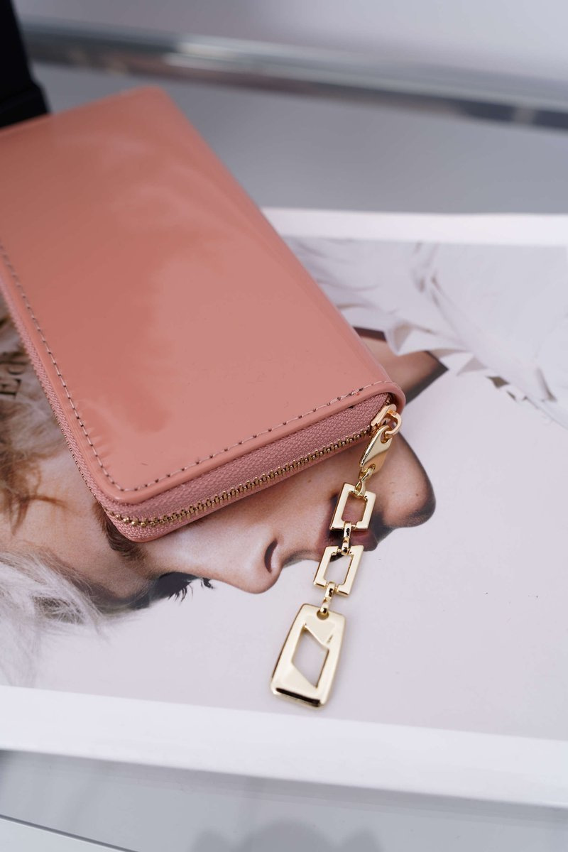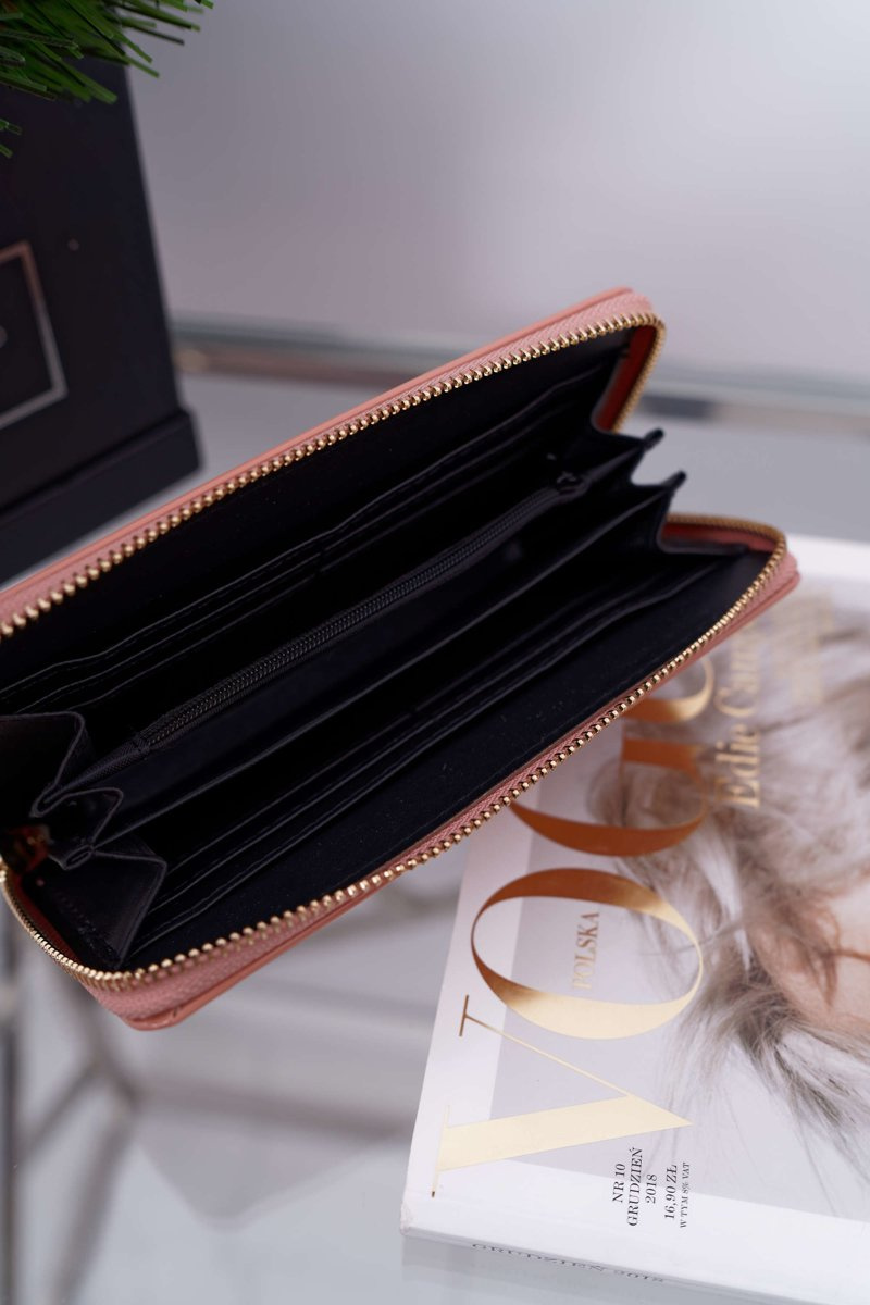 Portfel Damski Duży Różowy Złoty Ozdobny Suwak
