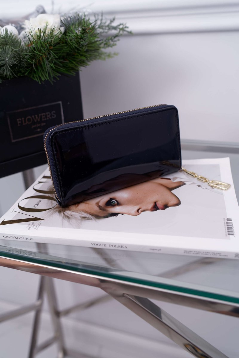 Portfel Damski Duży Granatowy Złoty Ozdobny Suwak