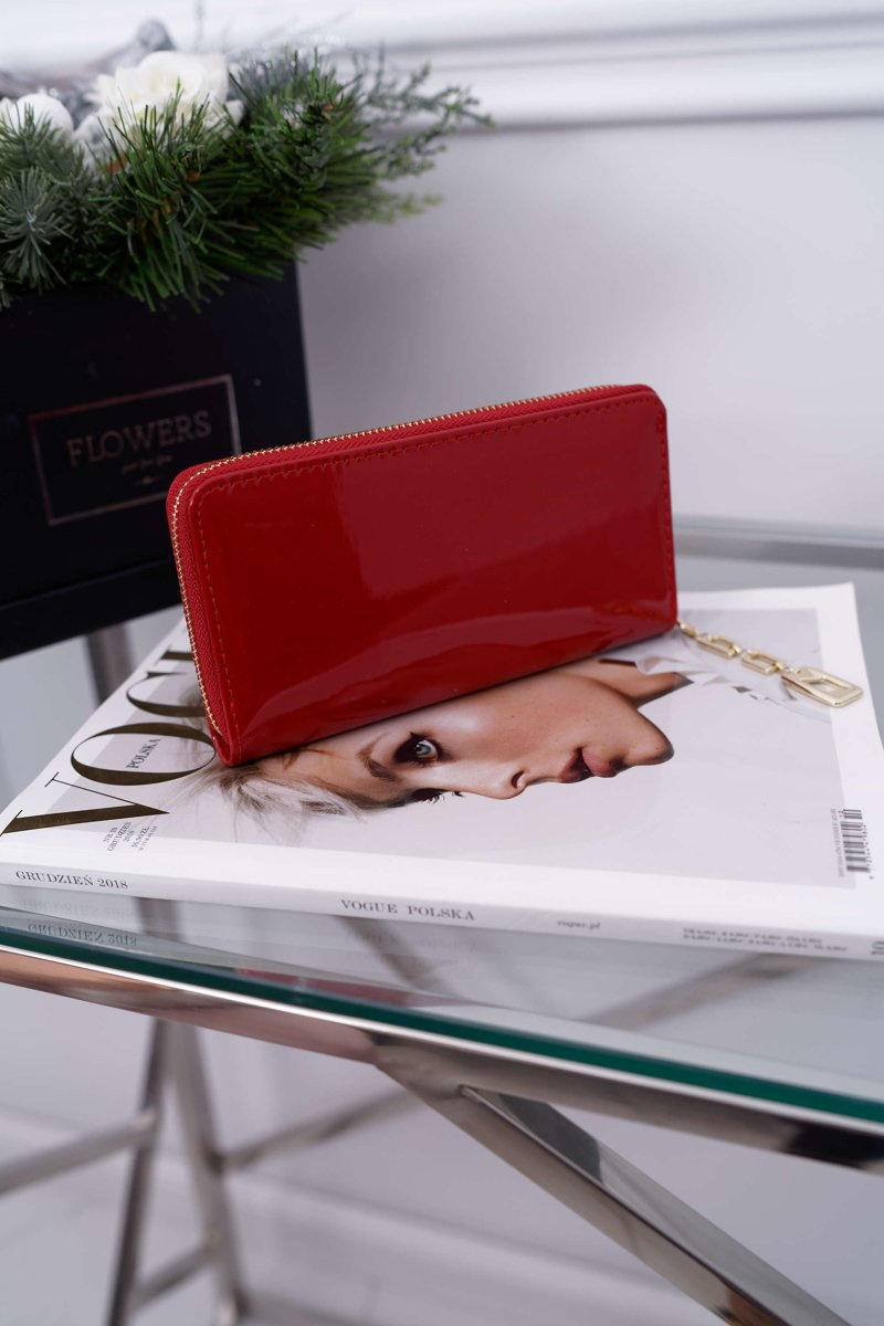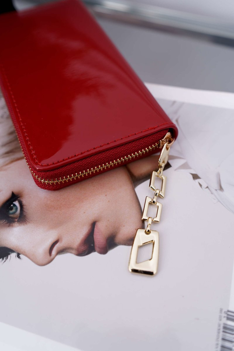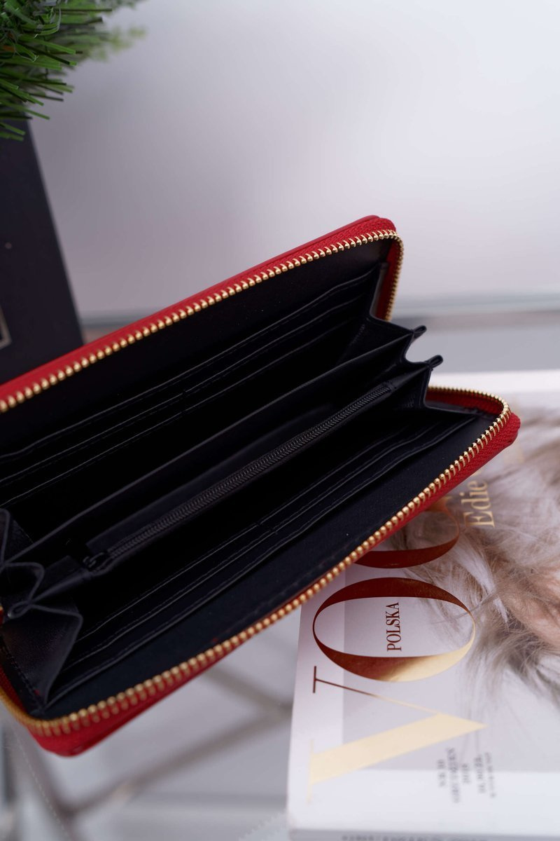Portfel Damski Duży Czerwony Złoty Ozdobny Suwak