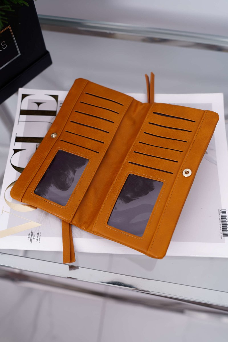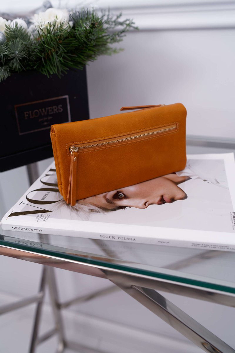 Przedstawiamy piękne portfele dla eleganckich Pań, dostępne w kilku cudownych kolorach. Produkty te charakteryzuje wyjątkowa prostota i elegancją. Wykonywane są przy użyciu najwyższej klasy materiałów. Staranne i piękne wykończenie każdego portfela oddaje niesamowitą dbałość o detale oraz modowy gust. Portfel posiada zapinanie na zatrzask. Wewnątrz znajdują się dwie komory oraz dużo kieszonek na karty. Na zewnętrznych stronach dwie dodatkowe kieszonki zamykane na zamek.
