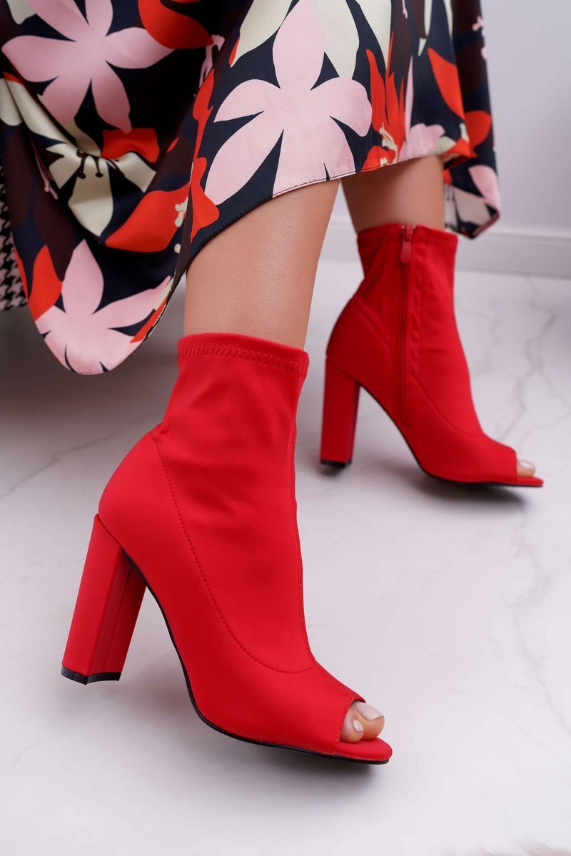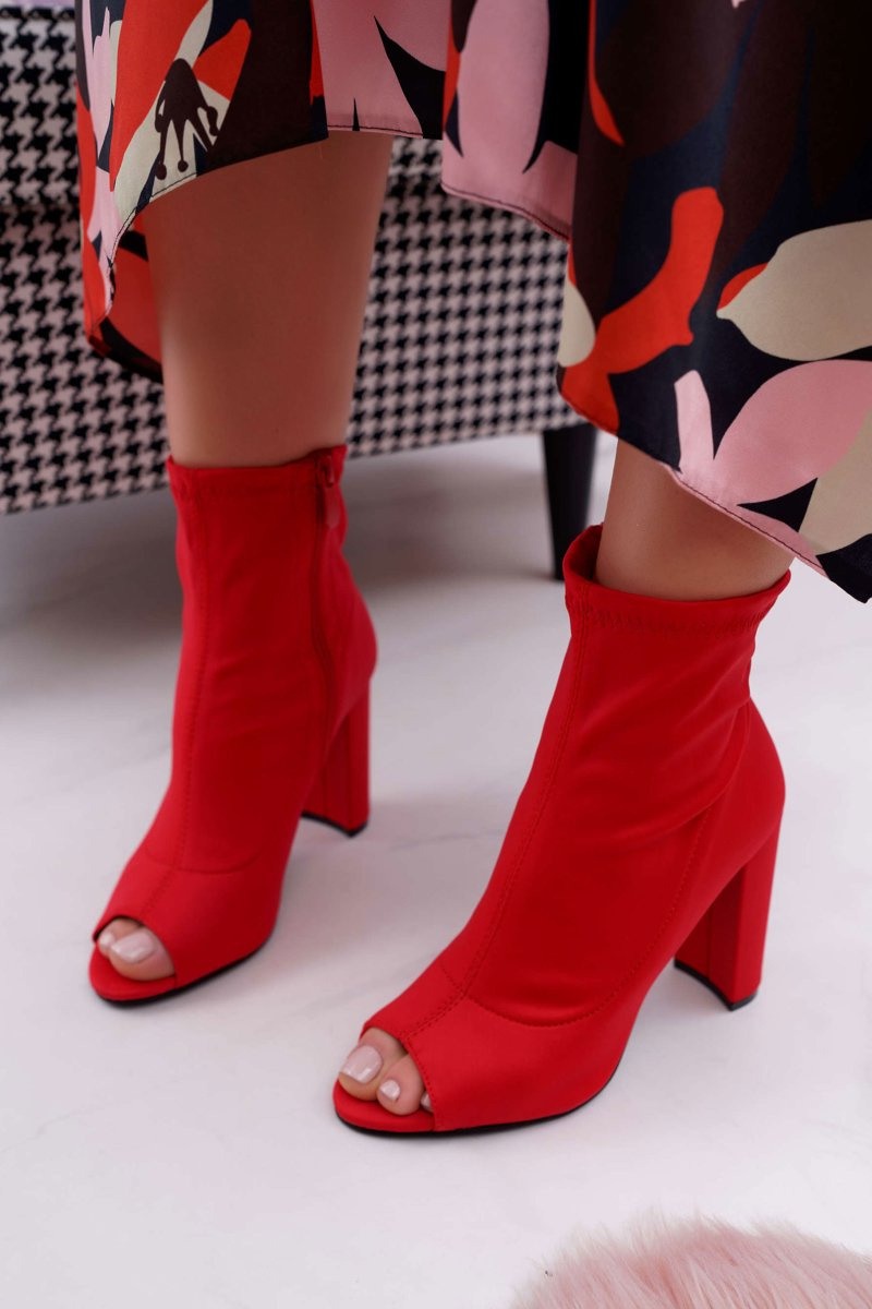 Damskie Botki Na Słupku Lycra Odkryte Palce Czerwone First
