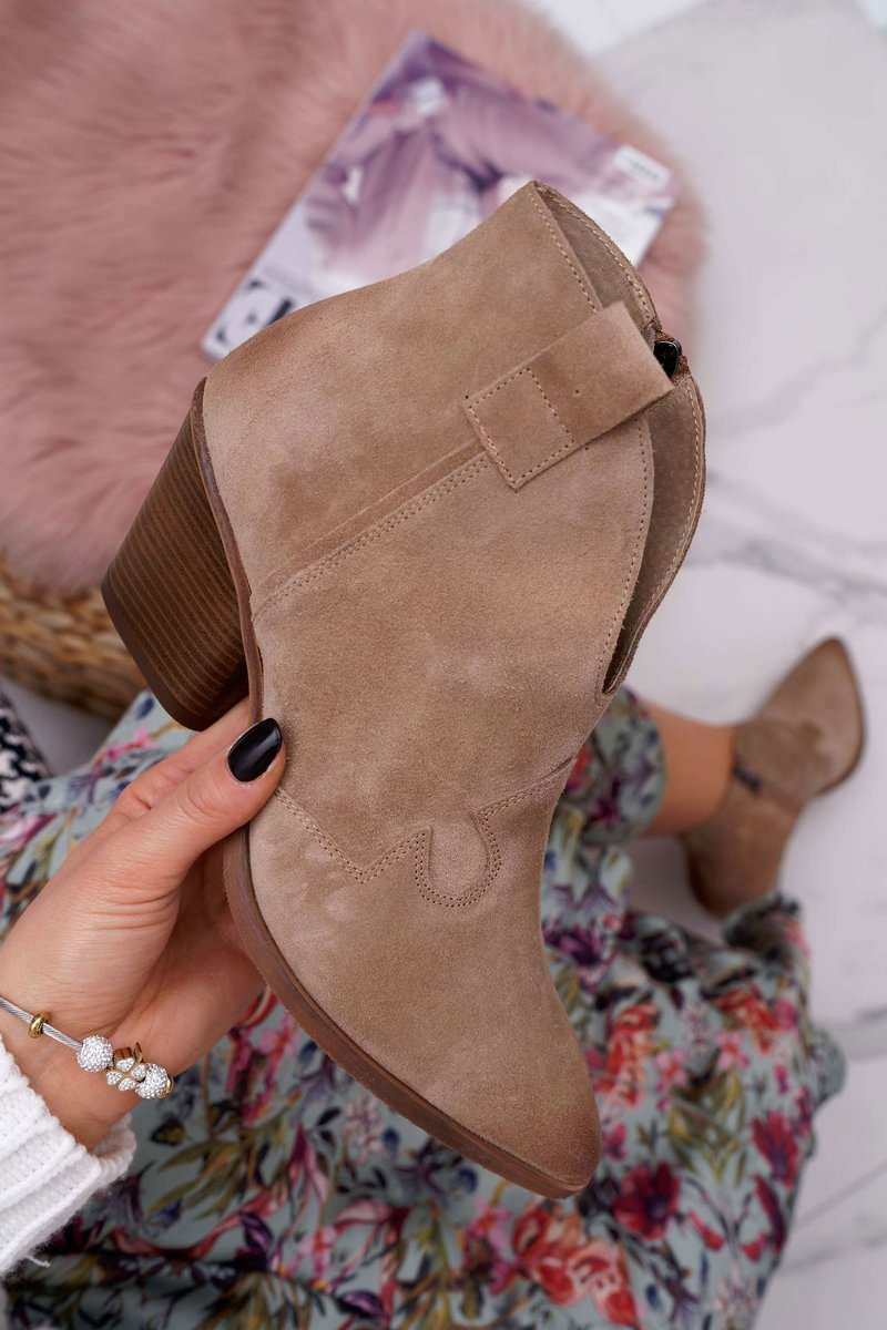 Botki Damskie Beżowe Skórzane na Obcasie Chavai