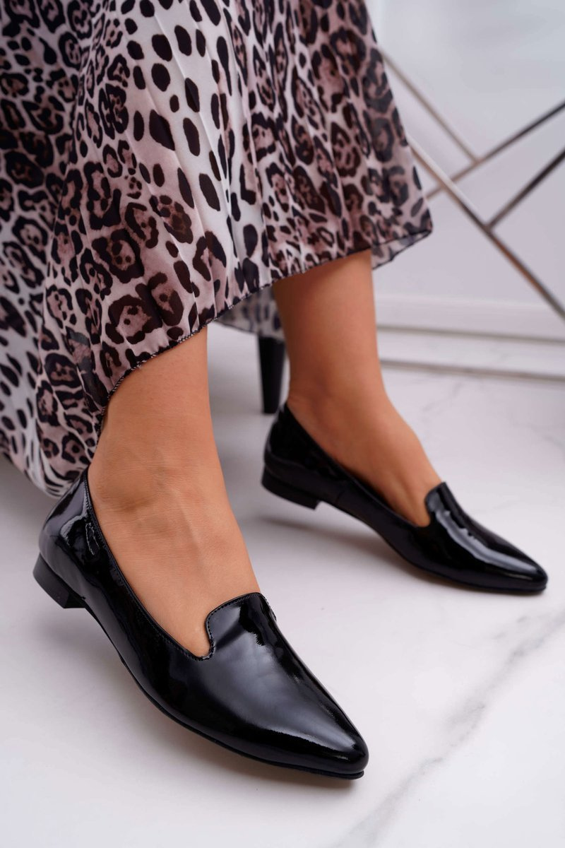 Mokasyny Damskie Lakierowane Loafery Czarne Sinedos