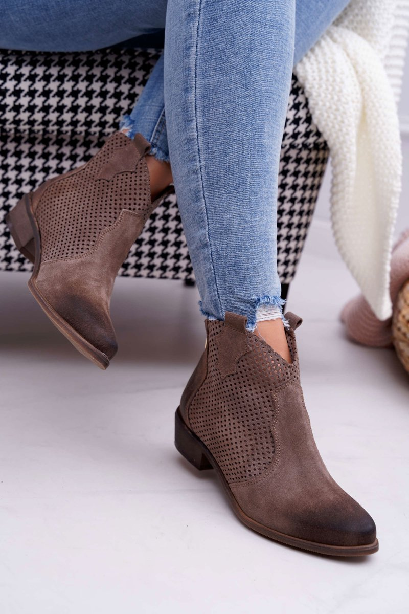 Botki Damskie Beżowe Skórzane Exquisite 1166