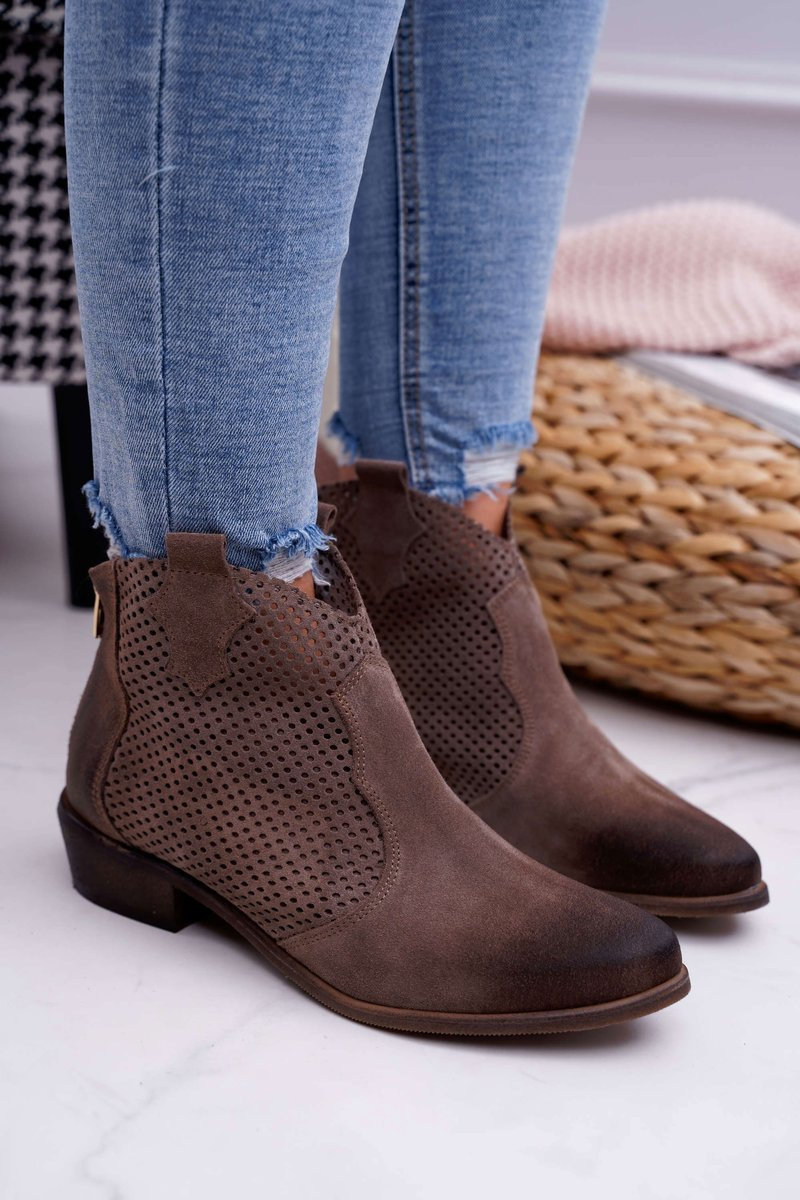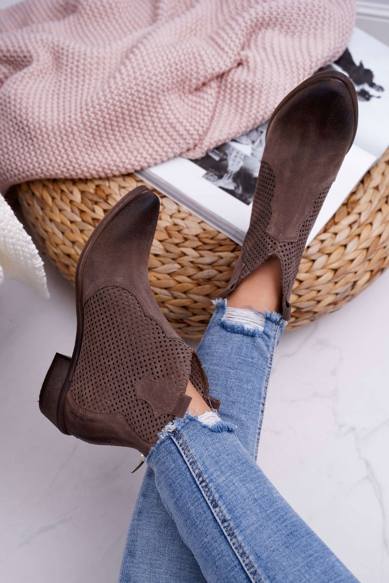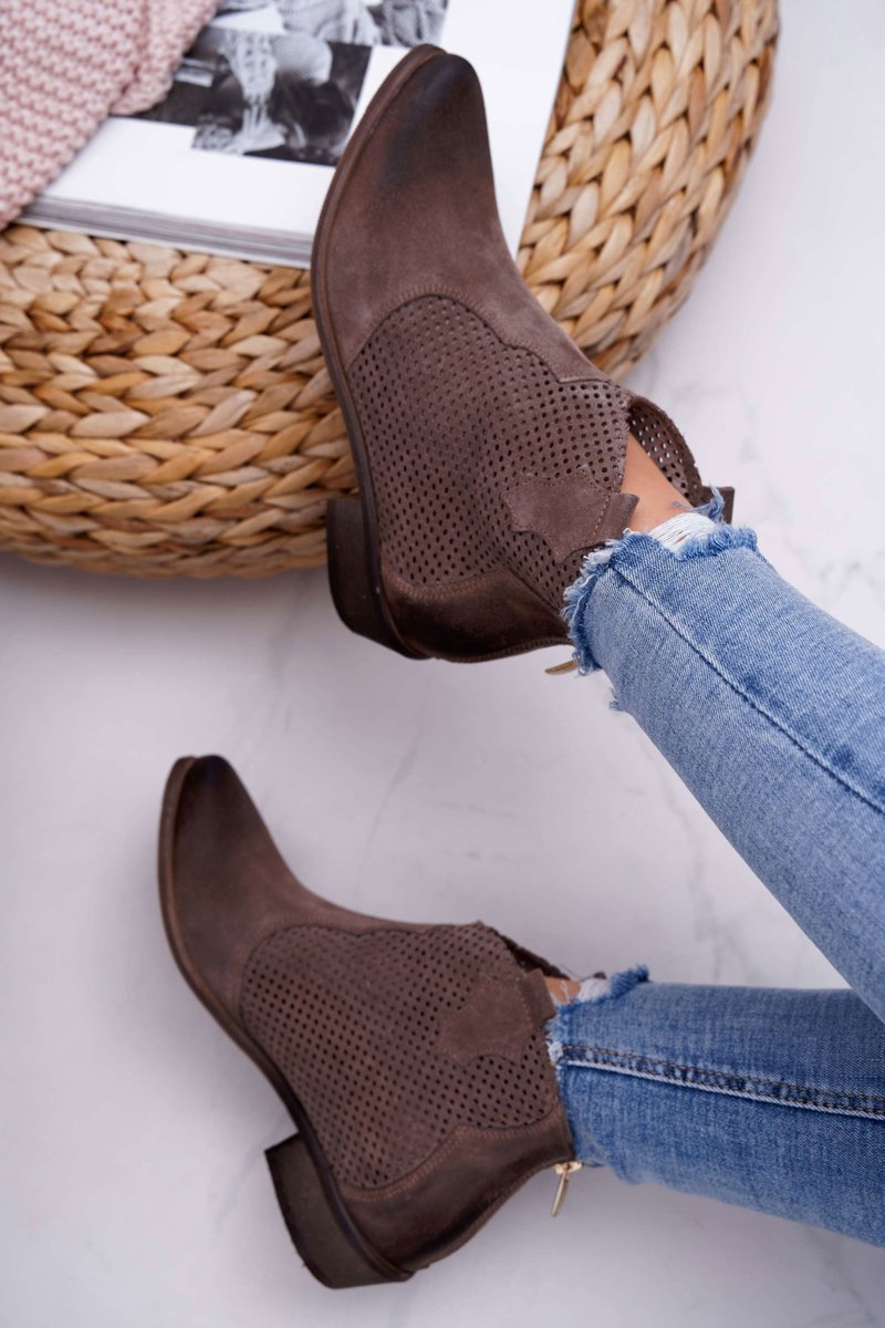 Botki to nie tylko buty na chłodne dni. Świetnie sprawdzą się również podczas tworzenia wiosennych stylizacji. Ażurowy design oraz zapinanie na zamek z tyłu cholewki. Botki w całości wykonane z naturalnej skóry. Produkt Polski firmy Exquisite co gwarantuje nam komfort oraz wysoką jakość wykonania. Idealne do zwiewnych sukienek oraz jeansowych spodni. Przy wyborze rozmiaru prosimy sugerować się tabelą rozmiarów.