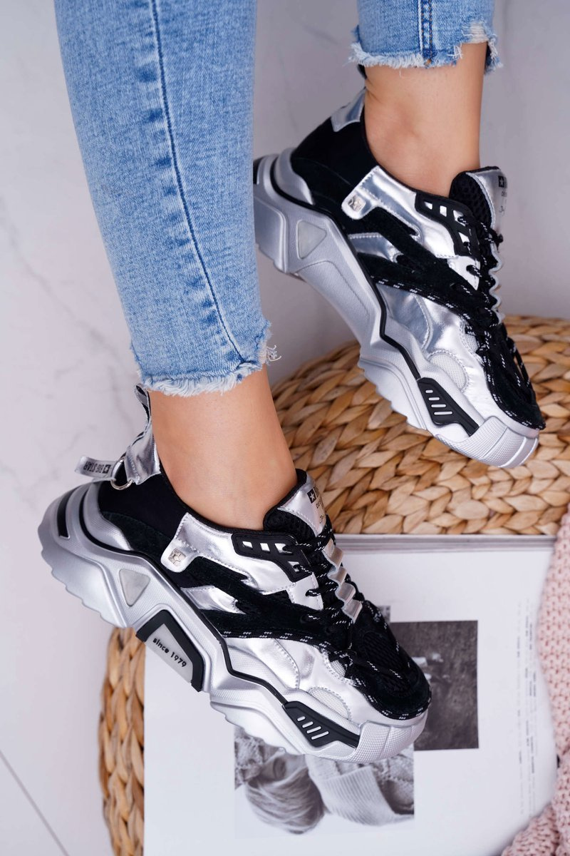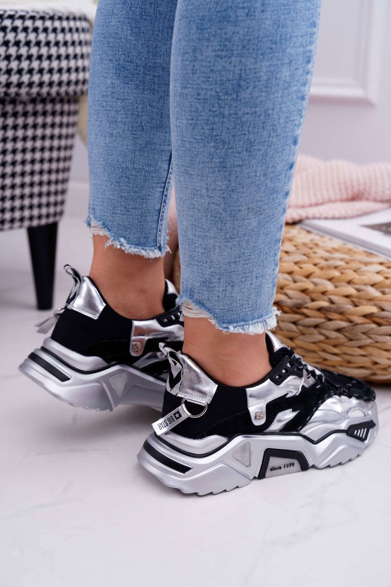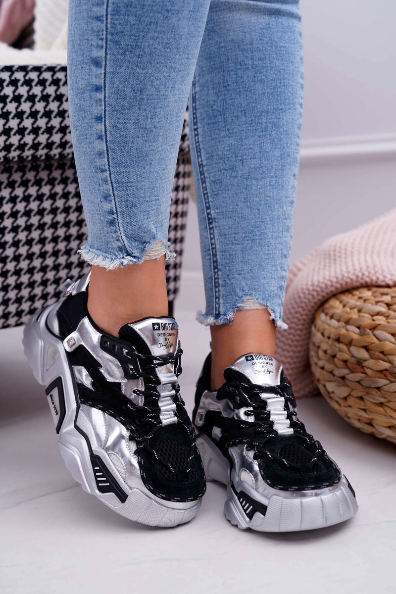 Damskie Sportowe Obuwie Big Star by Daniel Lopez Czarno Srebrne FF274A527