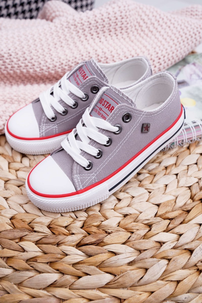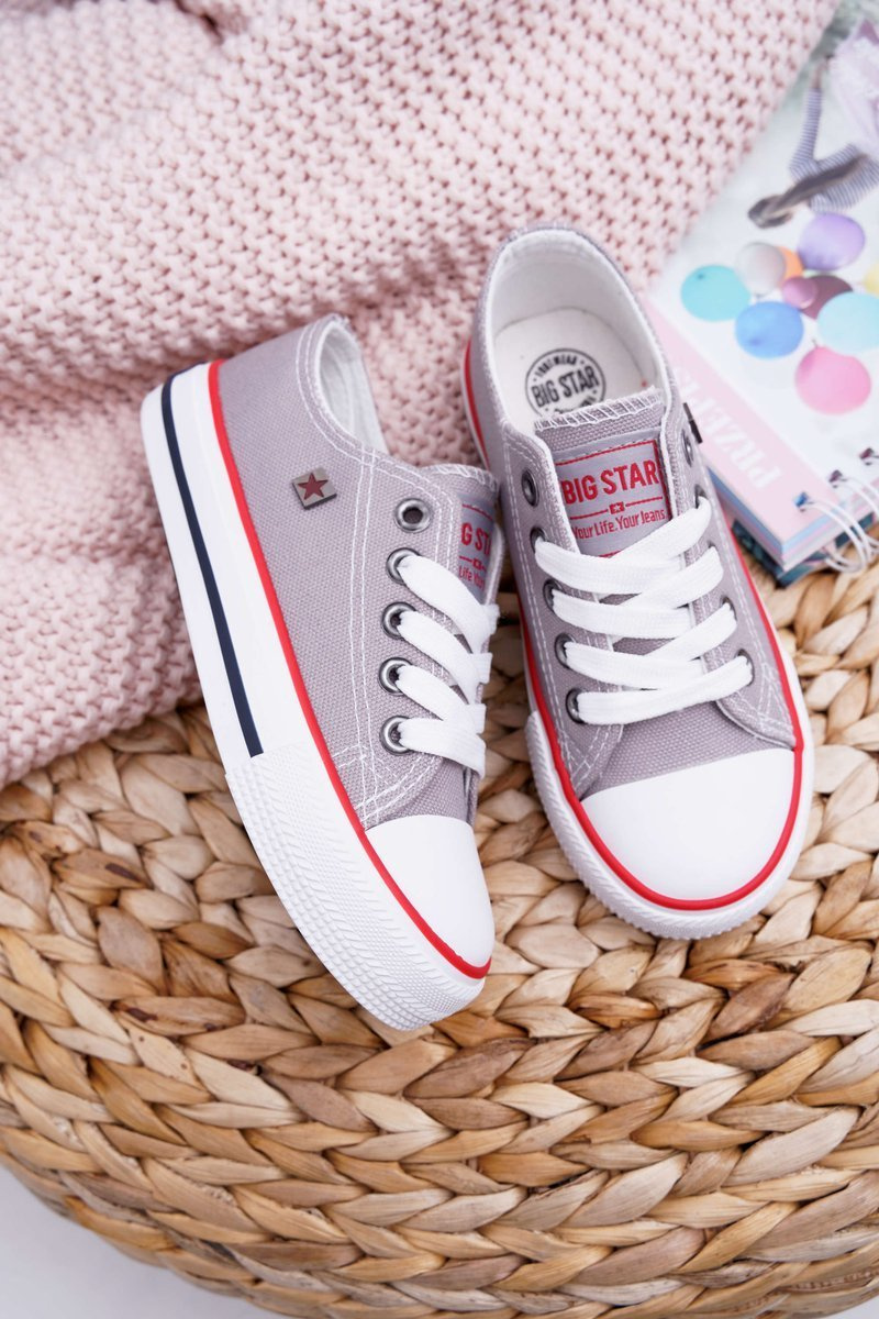 Klasyczne trampki od firmy BIG STAR. Trampki wykonane są z wysokiej jakości materiału, który jest odporny na działanie czynników zewnętrznych. Trampki dobrze dopasowują się do kształtu stopy oraz posiadają funkcjonalną, antypoślizgową podeszwę. Ponadczasowy wzór dostępny w wielu kolorach. Koniecznie sprawdź całą naszą kolekcję butów BIG STAR. Rozmiary 17-21 posiadają trzy oczka do sznurówek, natomiast rozmiary 22-27 posiadają 4 oczka. Przy wyborze rozmiaru prosimy sugerować się tabelą rozmiarów.