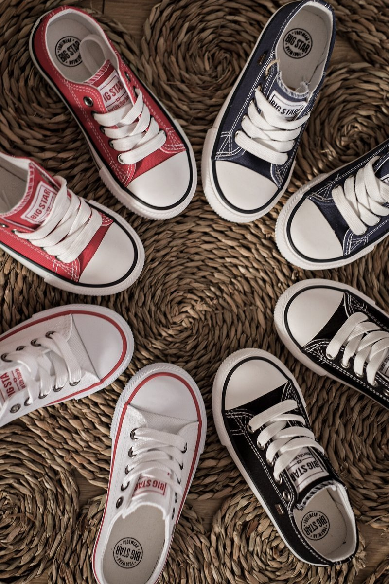 Klasyczne trampki od firmy BIG STAR. Trampki wykonane są z wysokiej jakości materiału, który jest odporny na działanie czynników zewnętrznych. Trampki dobrze dopasowują się do kształtu stopy oraz posiadają funkcjonalną, antypoślizgową podeszwę. Ponadczasowy wzór dostępny w wielu kolorach. Koniecznie sprawdź całą naszą kolekcję butów BIG STAR. Rozmiary 17-21 posiadają trzy oczka do sznurówek, natomiast rozmiary 22-27 posiadają 4 oczka. Przy wyborze rozmiaru prosimy sugerować się tabelą rozmiarów.