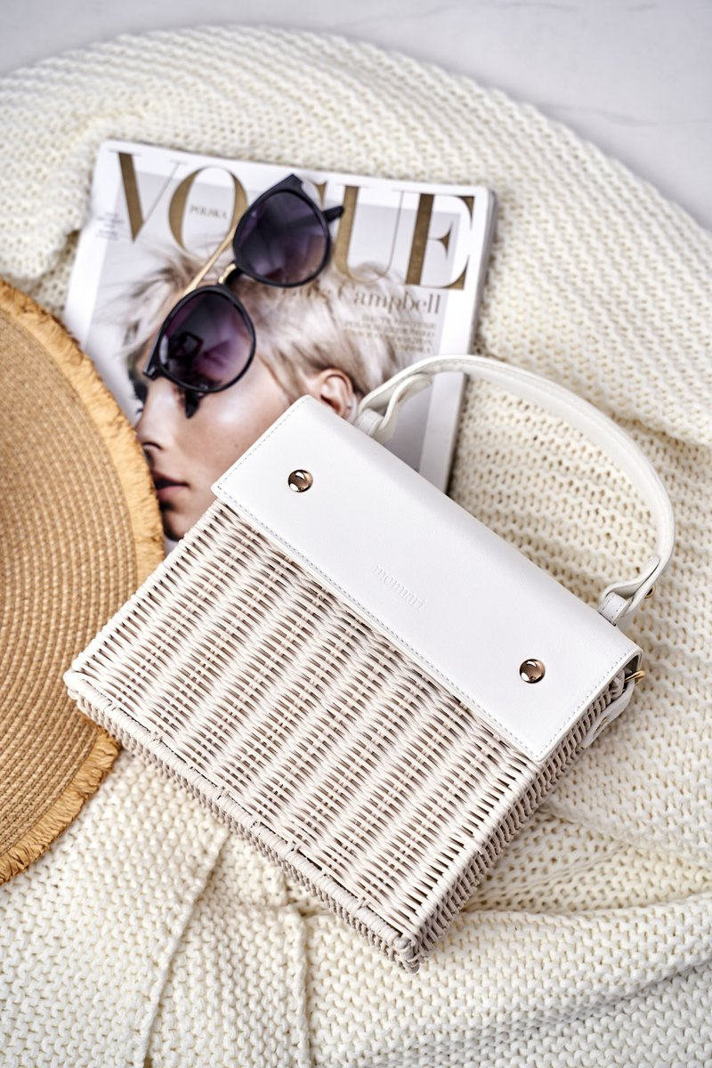 Kuferek małej wielkości z klapą wykonany ze skóry ekologicznej i plecionym koszykiem. Kuferek zawieszony na krótkiej rączce, z kieszonką w środku. Dodatkowo długi pasek z możliwością regulacji. Bardzo ciekawy i modny dodatek, który w pasuje się do każdej stylizacji zarówno eleganckiej, jak i na co dzień. Hit nadchodzącego sezonu!