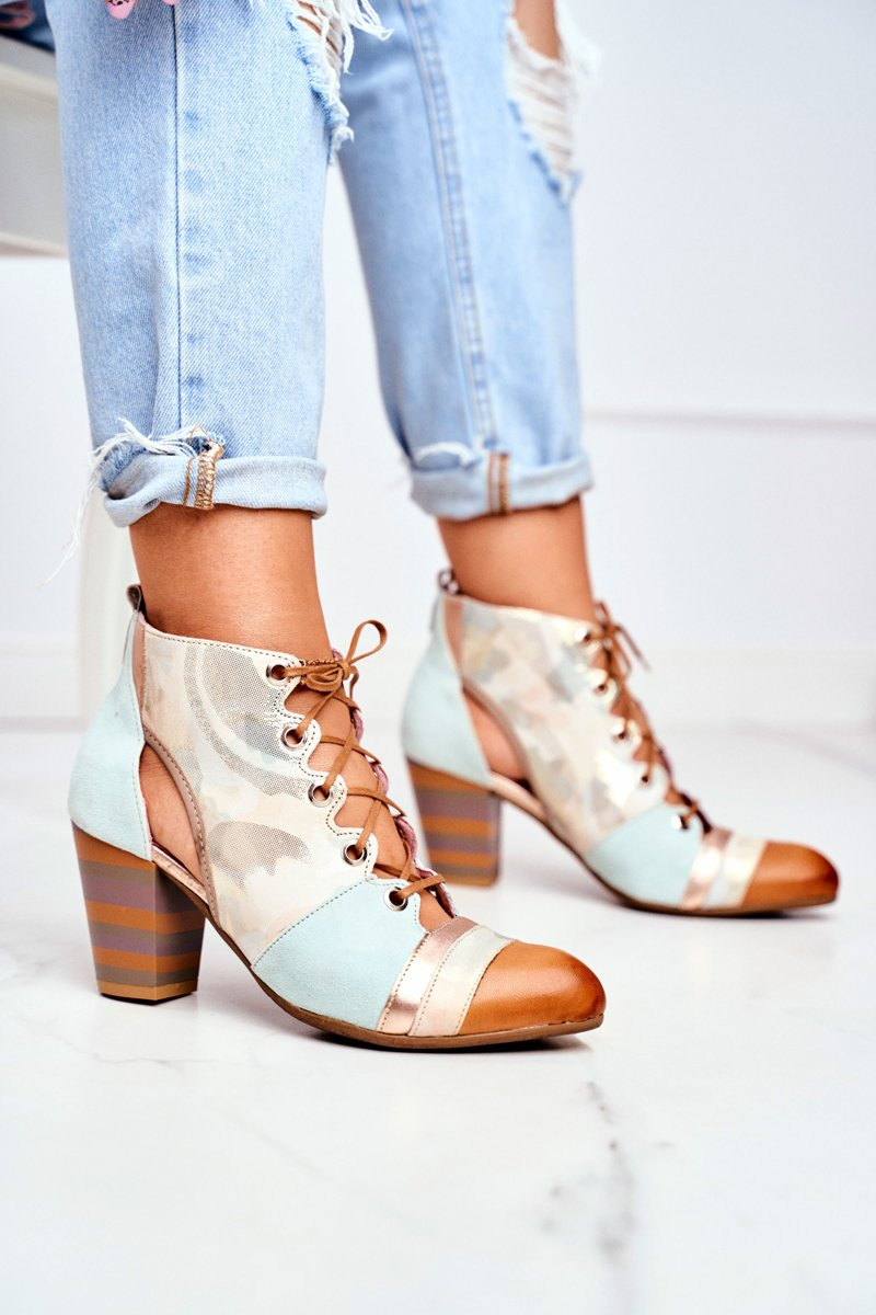 Botki Damskie Na Słupku Skórzane Maciejka Wiosenne 03938-04