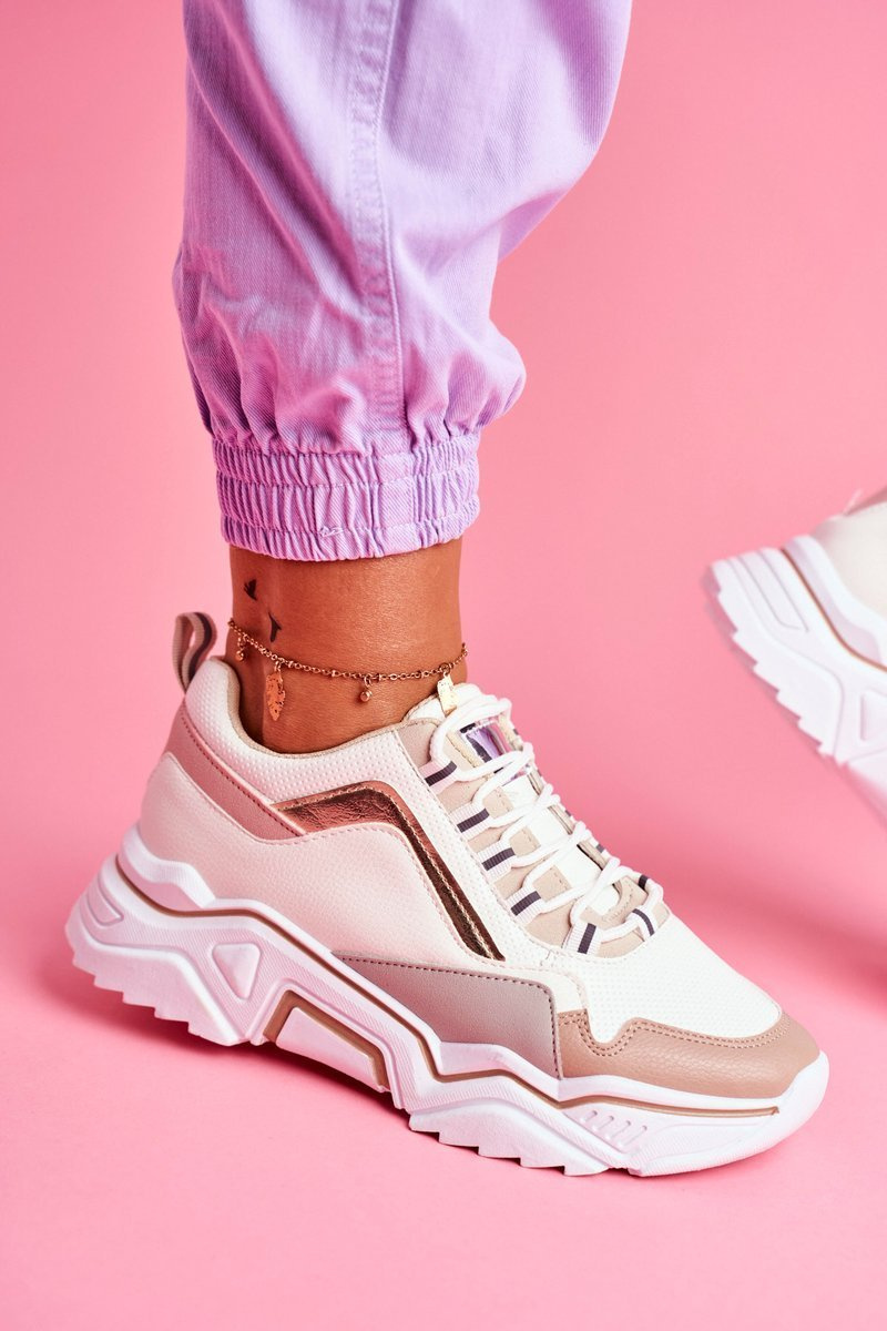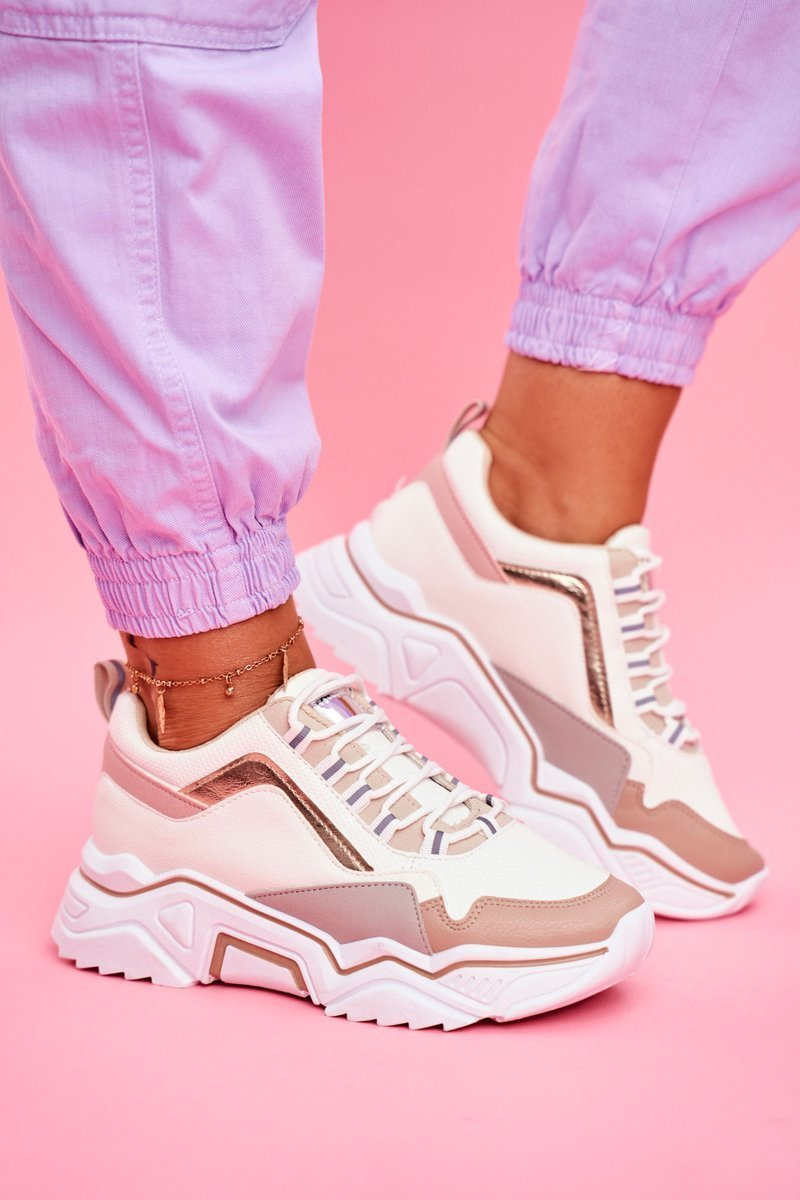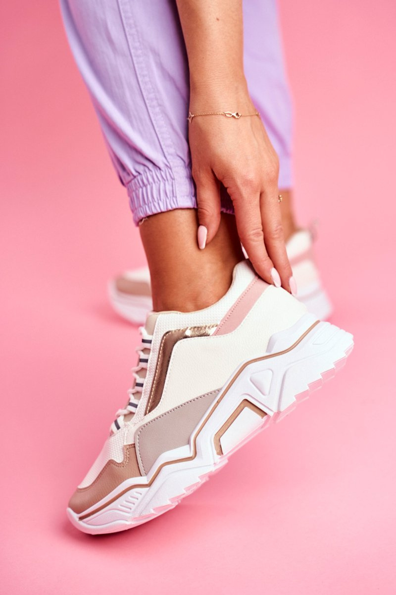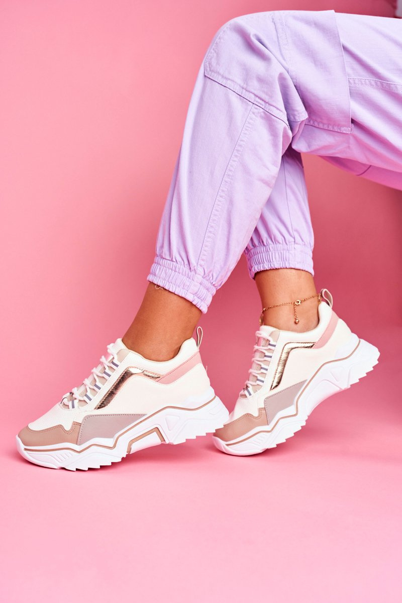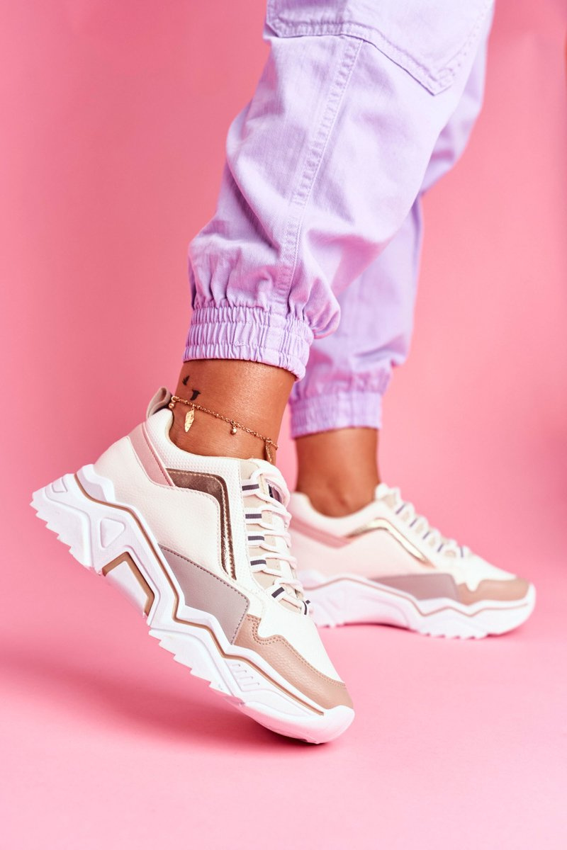 Sportowe Damskie Buty Biało Beżowe Rollen