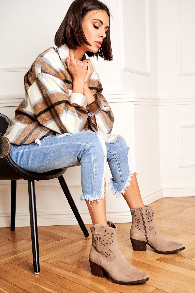 Botki to nie tylko buty na chłodne dni. Świetnie sprawdzą się również podczas tworzenia wiosennych stylizacjach. Botki posiadają zamek z boku cholewki ułatwiający zakładanie. W całości wykonane ze skóry zamszowej, co gwarantuje nam komfort oraz wysoką jakość wykonania. Idealne do zwiewnych sukienek oraz jeansowych spodni. Przy wyborze rozmiaru prosimy sugerować się tabelą rozmiarów.