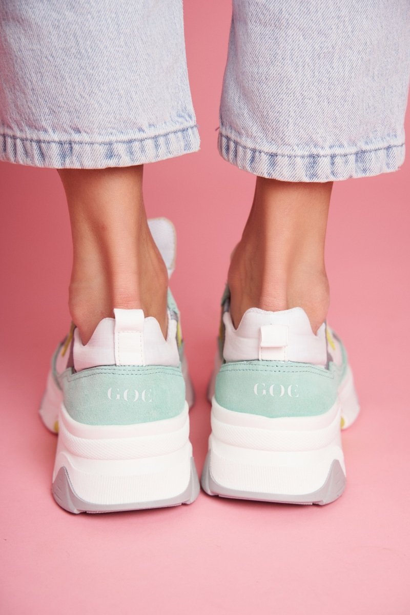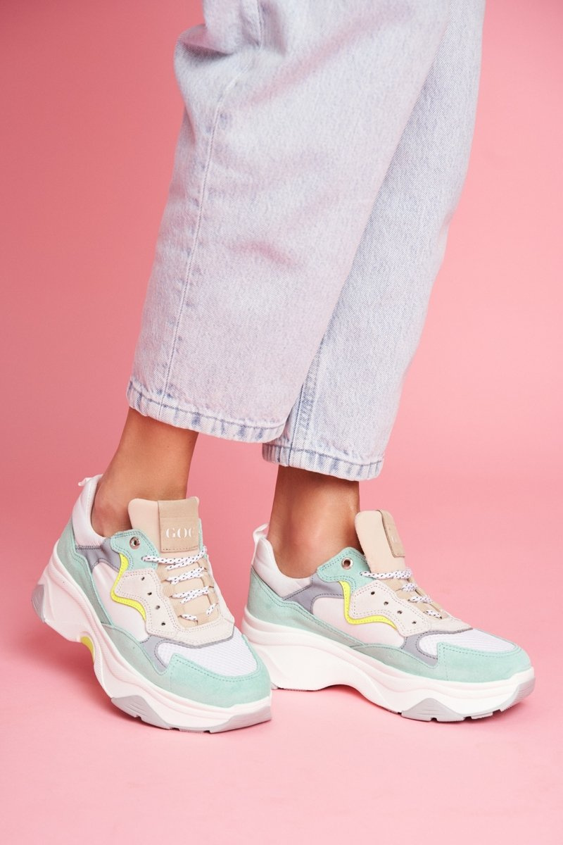 Damskie Sportowe Skórzane Obuwie GOE Biało Miętowe FF2N3011