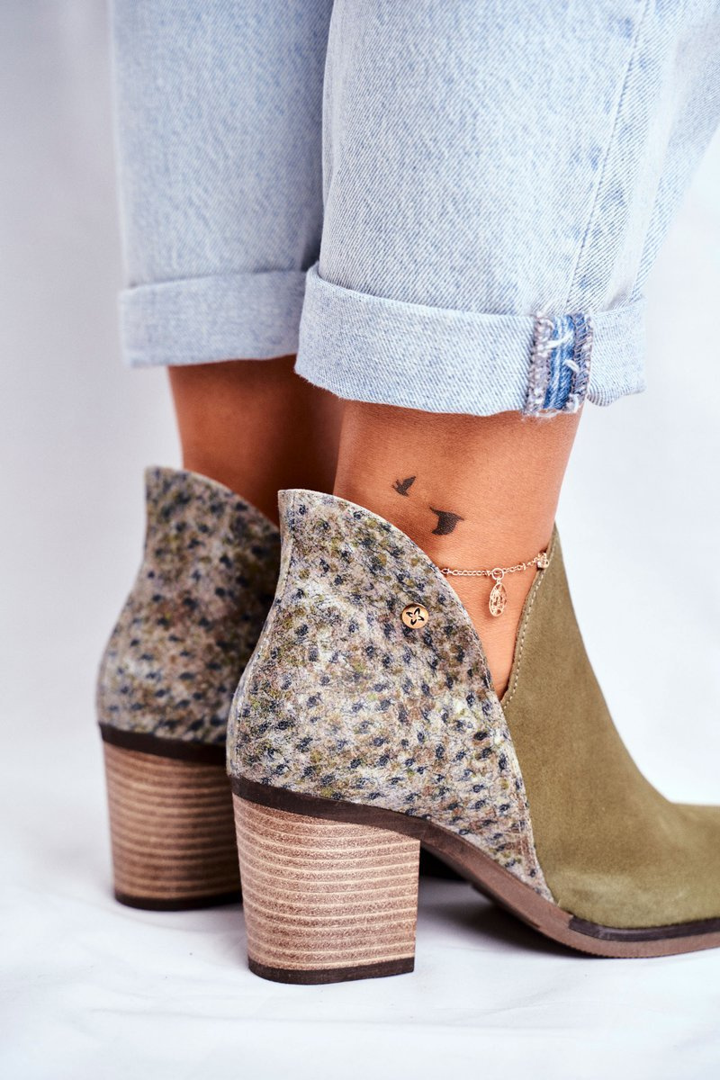 Damskie Skórzane Botki Na Słupku Maciejka Oliwkowe 04492-24