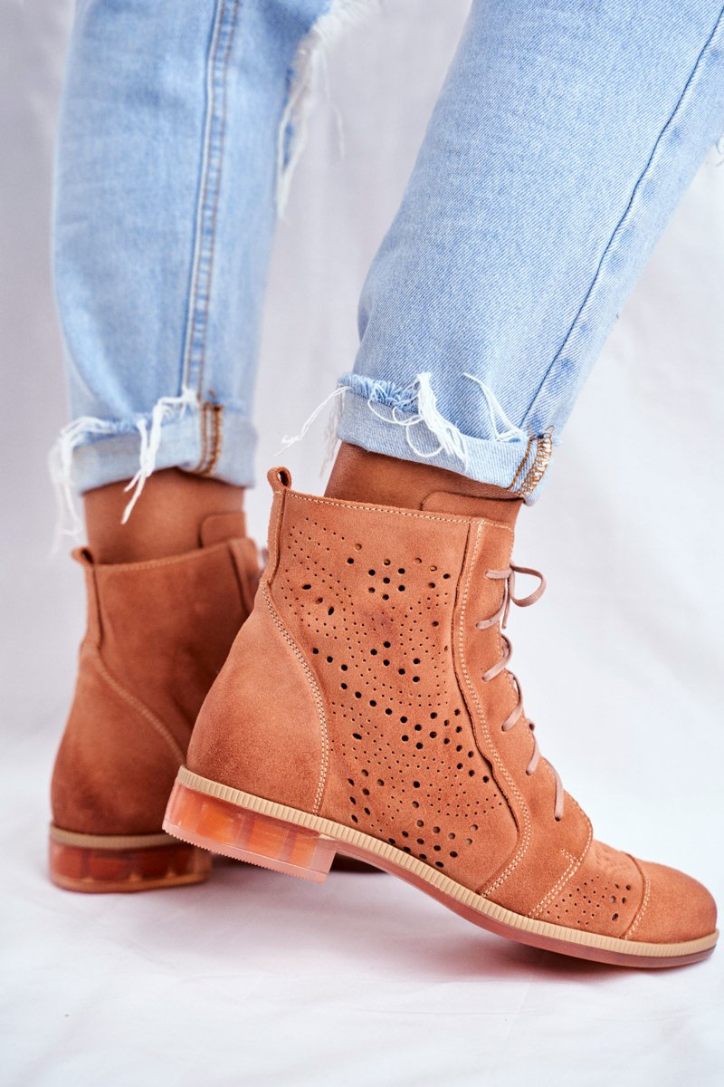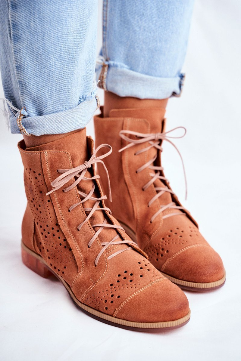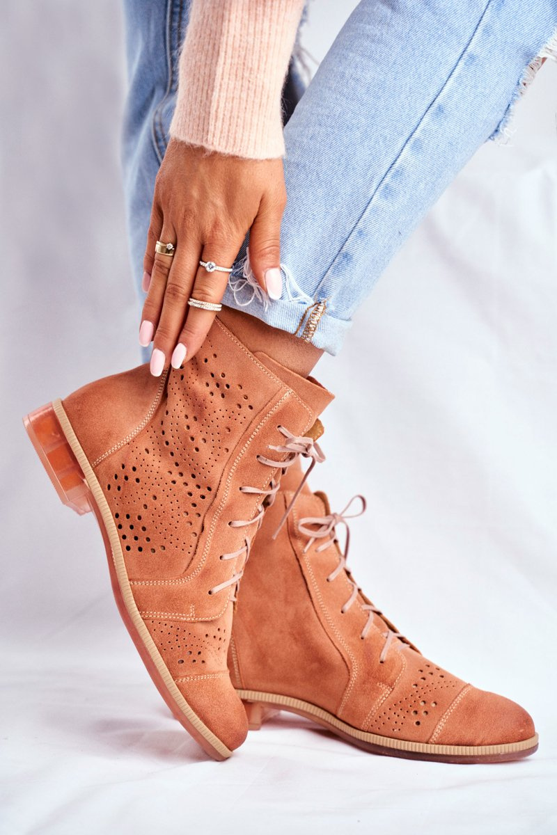 Botki Damskie Skórzane Trzewiki Maciejka Brzoskwiniowe 04468-18