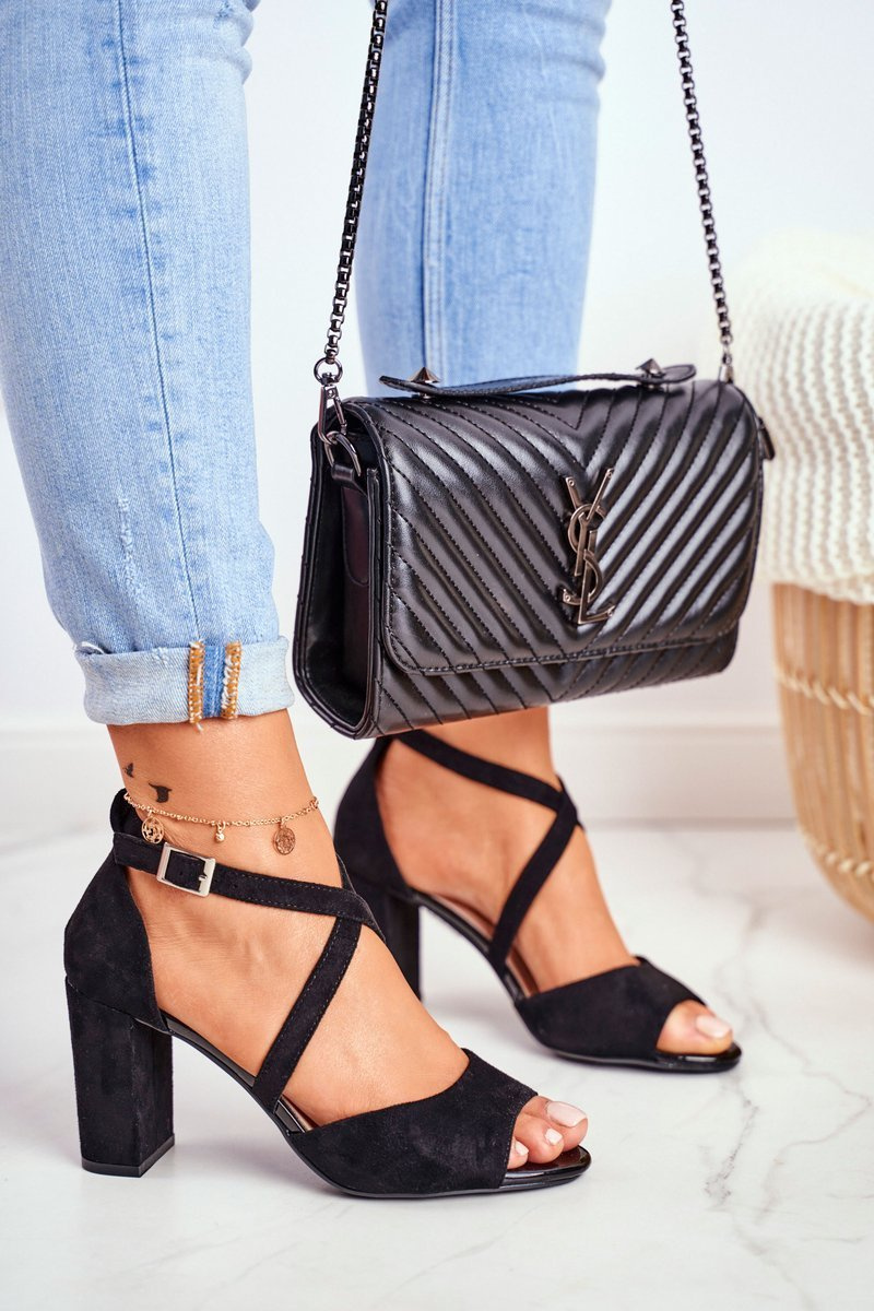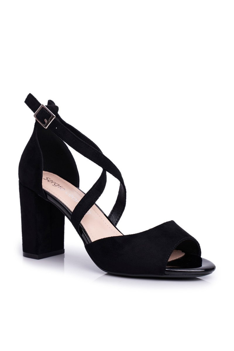 Sandały Damskie Na Słupku Sergio Leone Czarne SK865