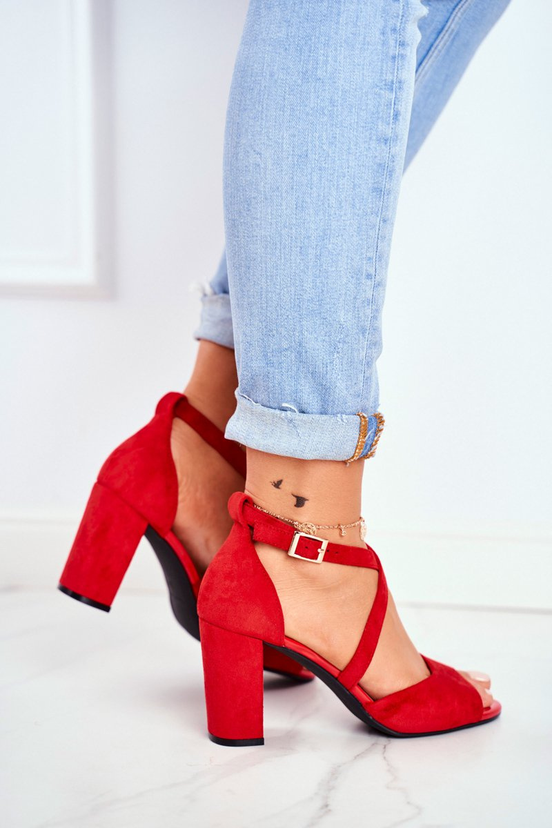 Sandały Damskie Na Słupku Sergio Leone Czerwone SK865