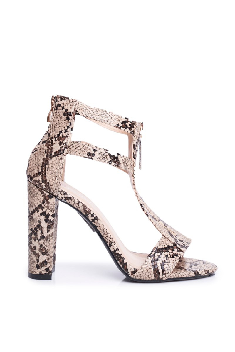 Sandały Na Słupku Beżowe Z Wężowym Wzorem Folly