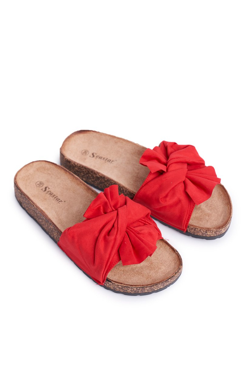 Damskie Klapki Na Korku Kokardki Czerwone Felis