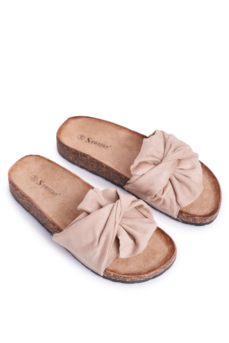 Damskie Klapki Na Korku Kokardki Beżowe Felis