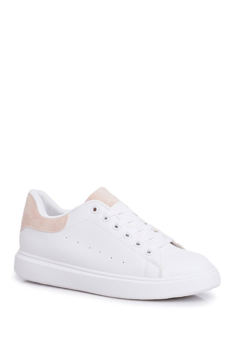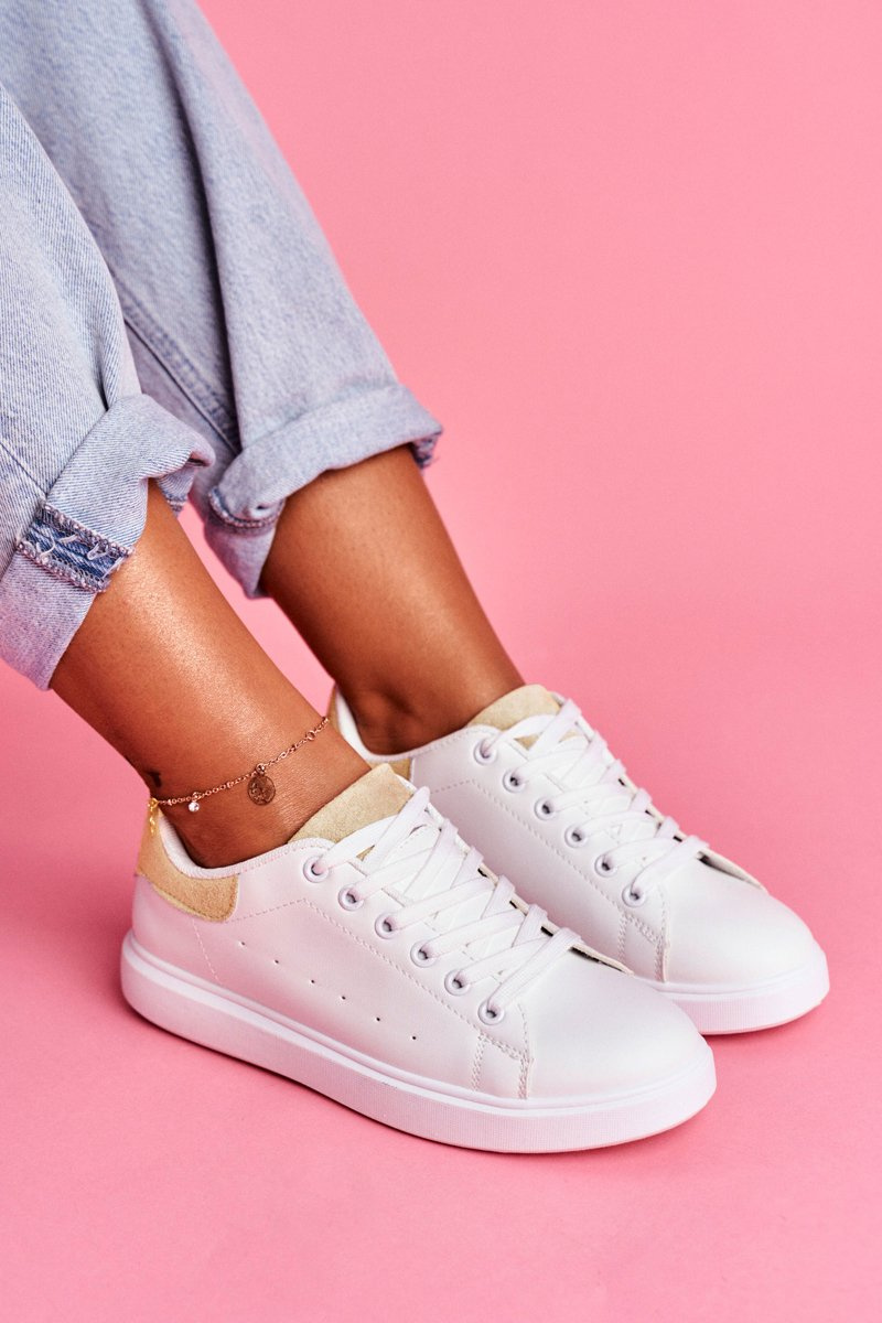 Sportowe Damskie Buty Białe z Beżowym Zapiętkiem Milly