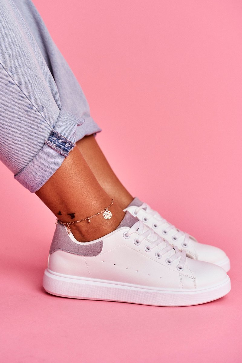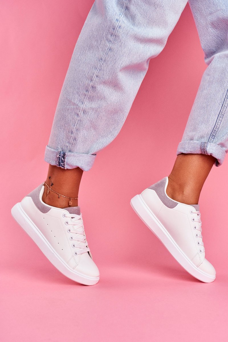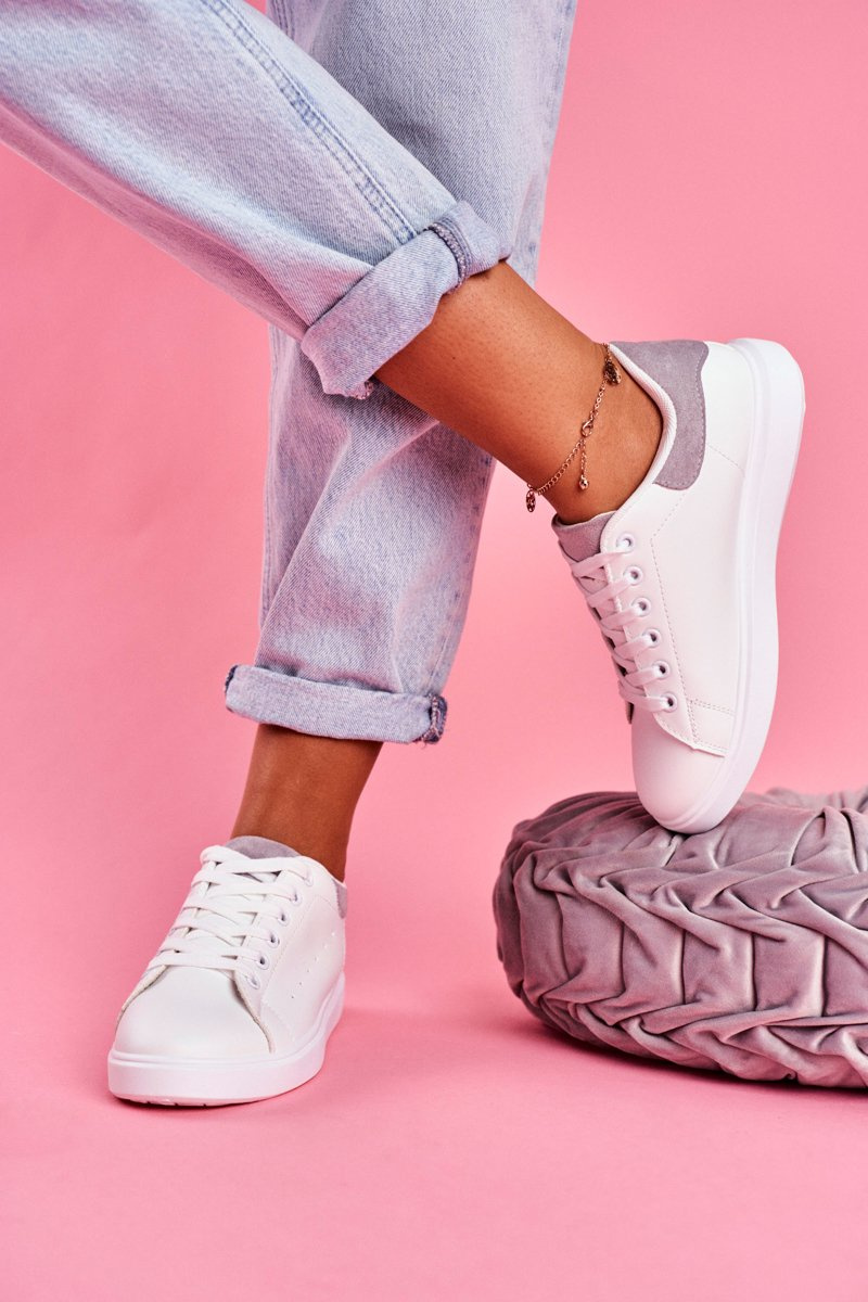 Sportowe Damskie Buty Białe z Szarym Zapiętkiem Milly
