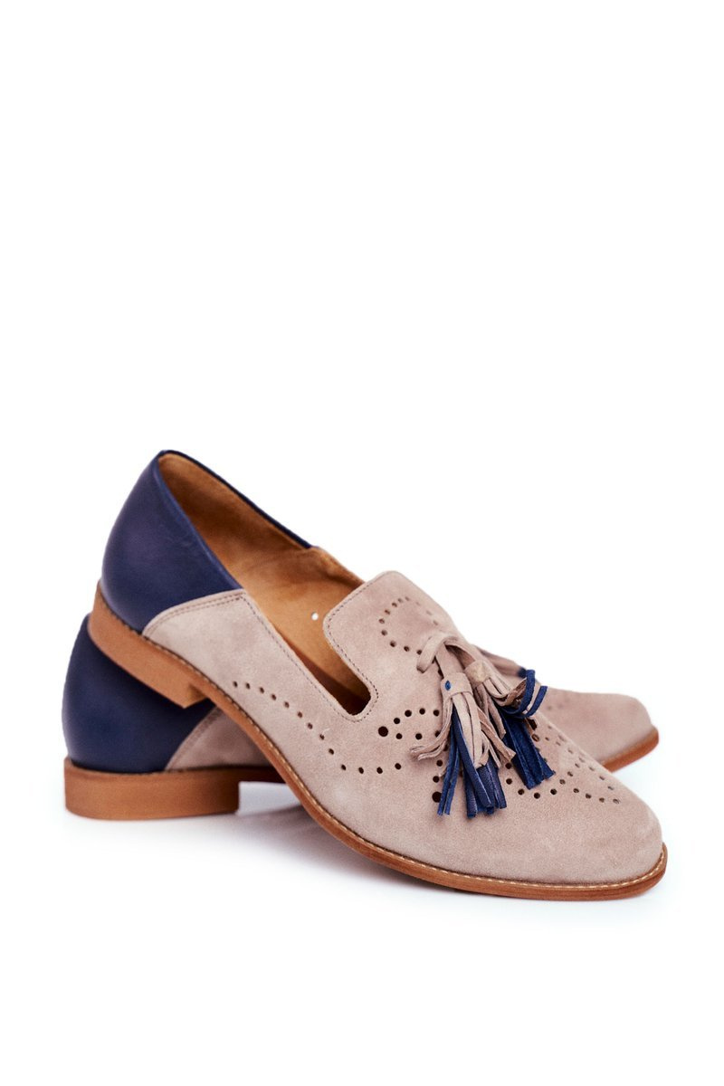 Damskie Półbuty Maciejka Skórzane Mokasyny Beżowe 04484-04/00-5