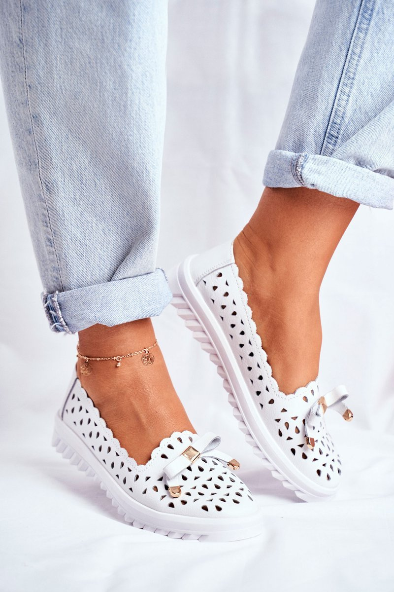 Mokasyny Damskie Skórzane Ażurowe LR71515 Białe Murrieta