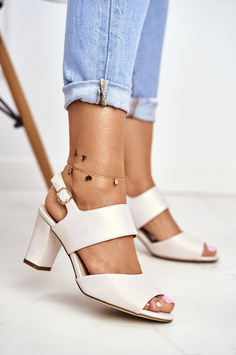Perłowe Sandały Na Słupku Sergio Leone SK778 Beżowe