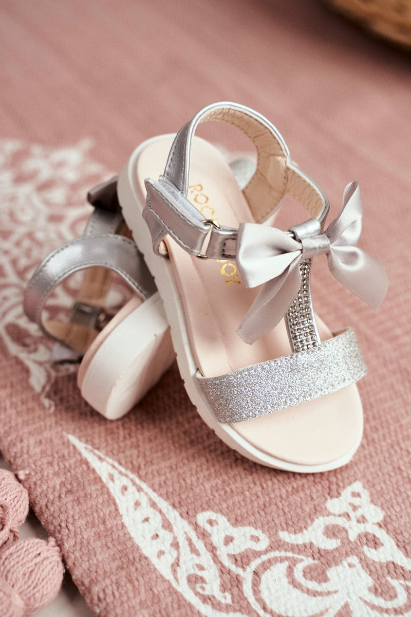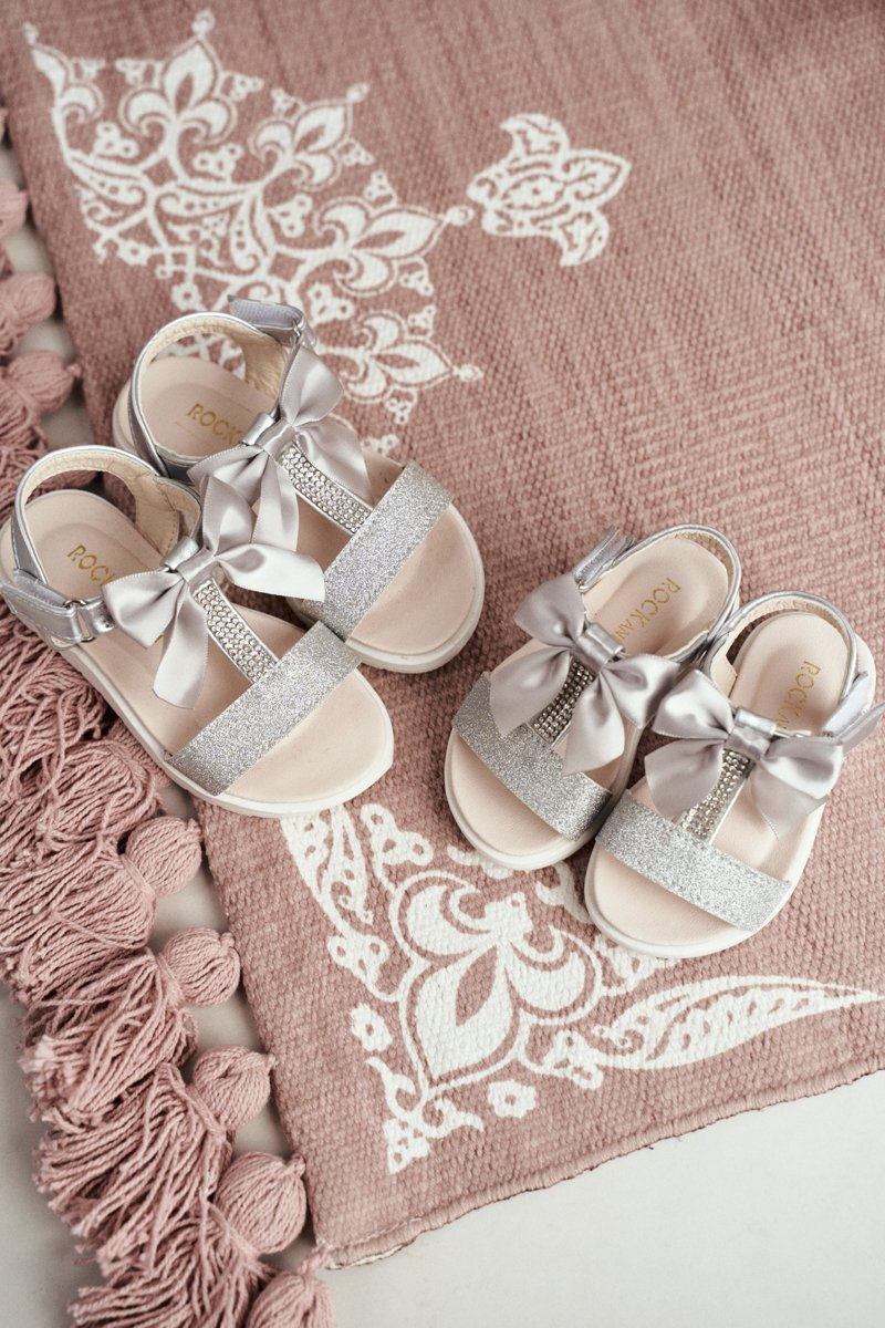 Dziecięce Sandałki Na Rzepy Dla Dziewczynki Srebrne Bella