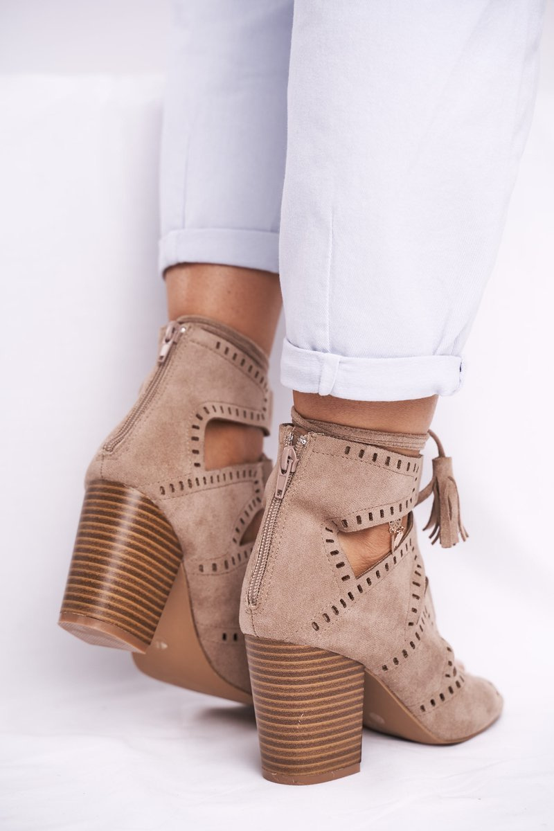 Botki Damskie Na Słupku Zamszowe Odkryte Beżowe Empty