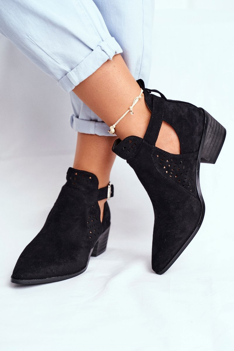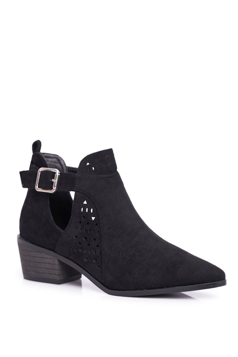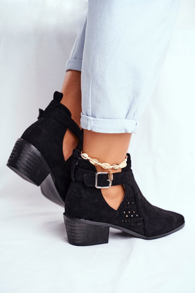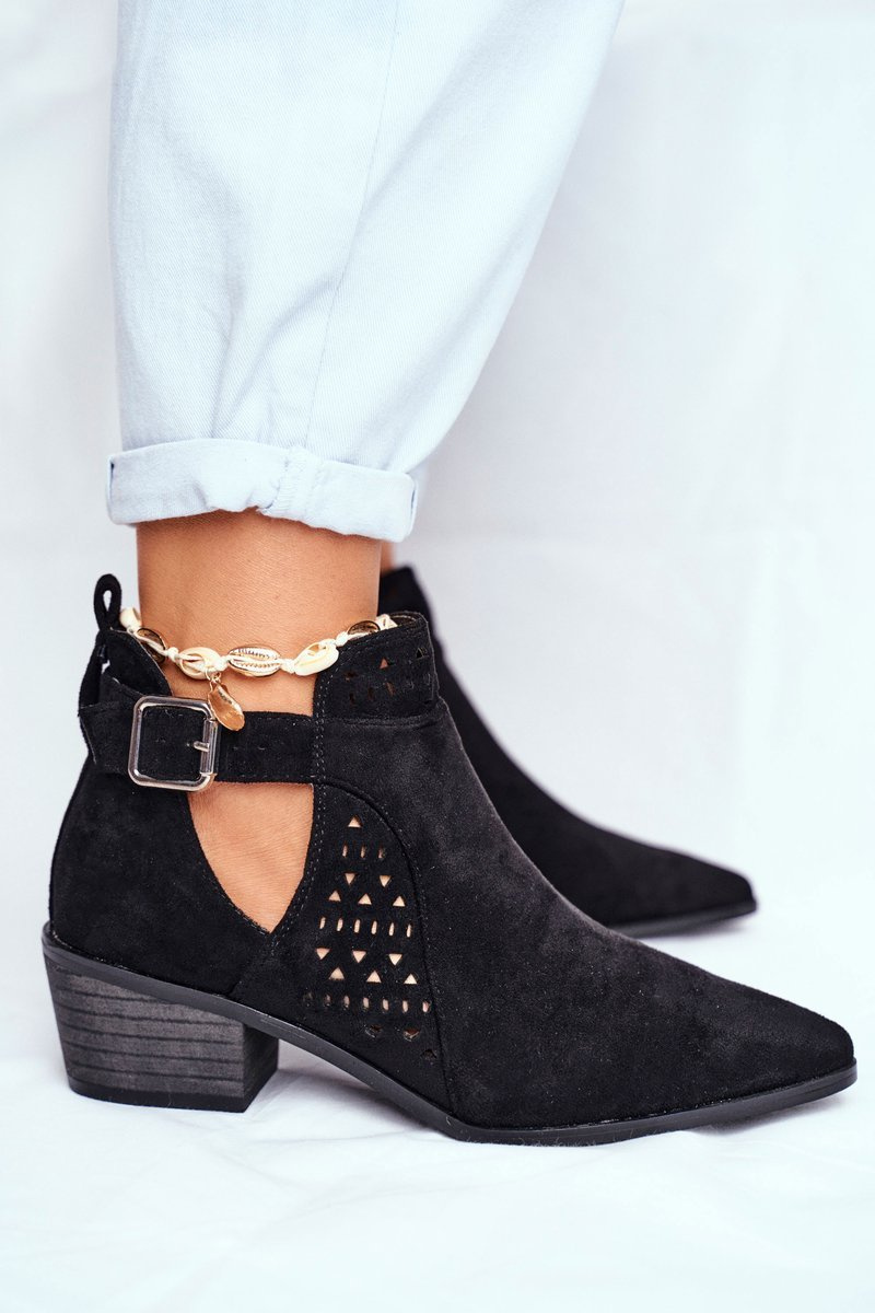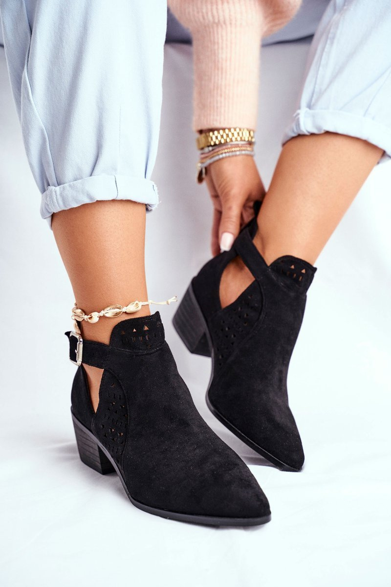Zamszowe Botki Na Obcasie Z Klamrą Czarne Esen