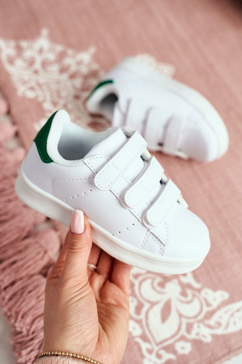Dziecięce Sportowe Buty Na Rzepy Biało-Zielone Fifi