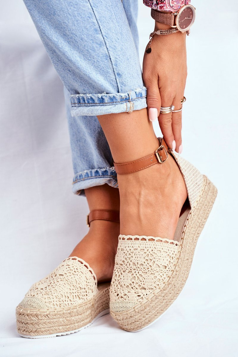 Espadryle Damskie Na Platformie Lniane Beżowe Palm Spring