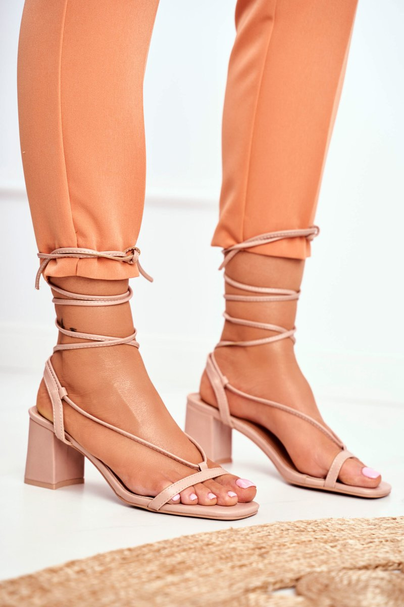 Sandały Damskie Na Słupku Wiązane Beżowe Morning