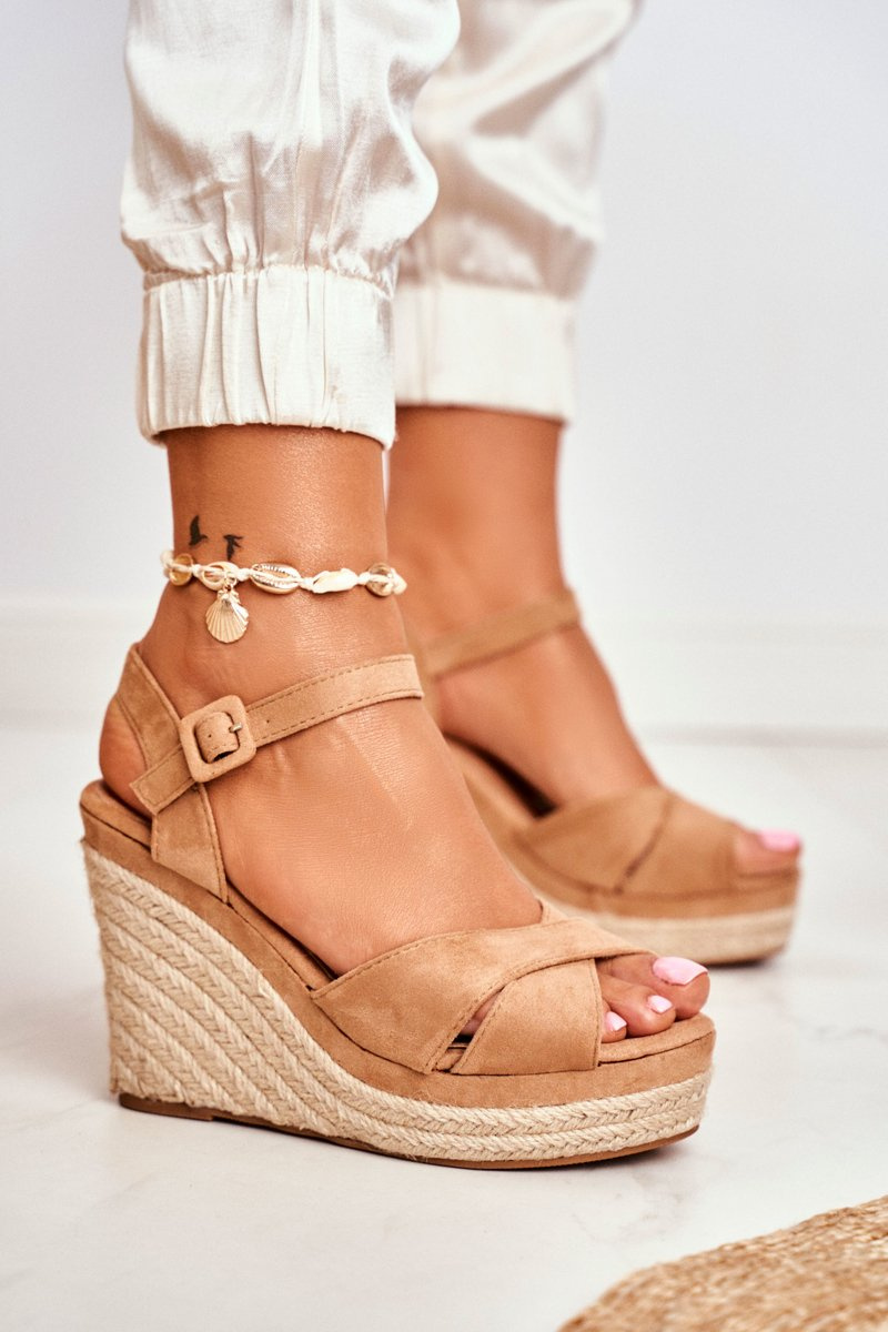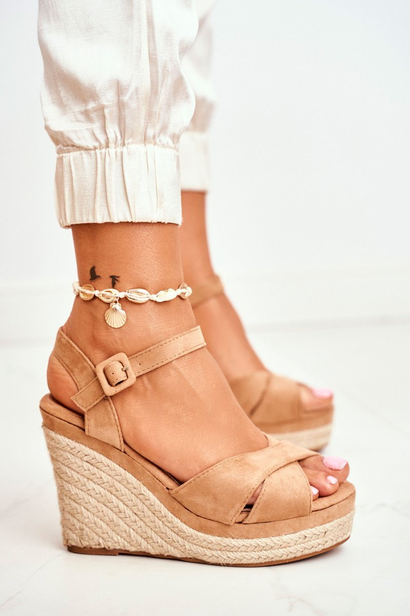 Sandałki Damskie Na Koturnie Beżowe Sevilla