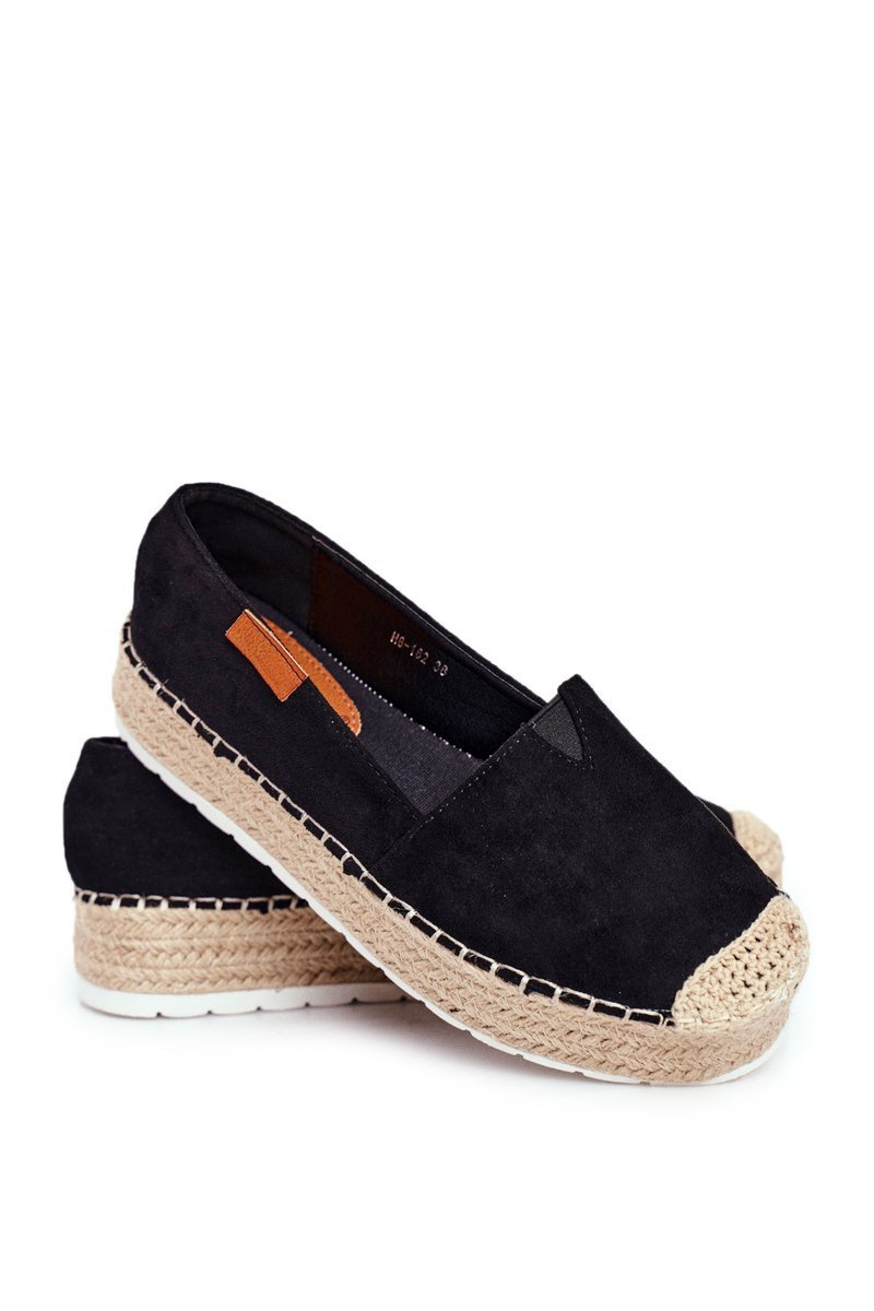 Espadryle Damskie Na Platformie Lniane Czarne La Playa