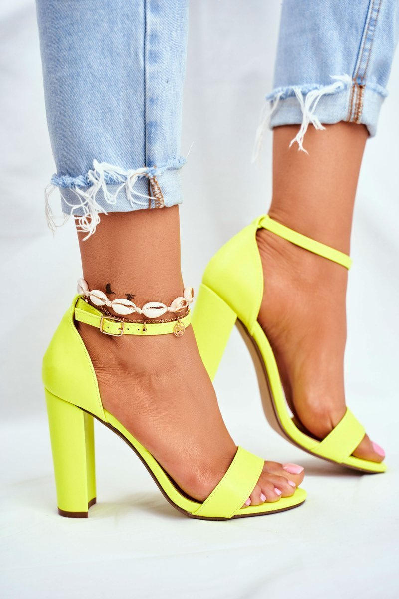 Sandały Damskie Na Słupku Żółte Neon Anastasie