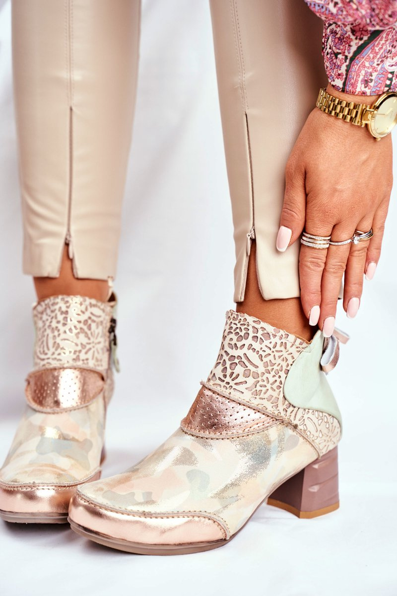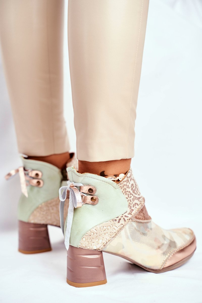 Botki Damskie Na Słupku Maciejka Beżowe 03410-04