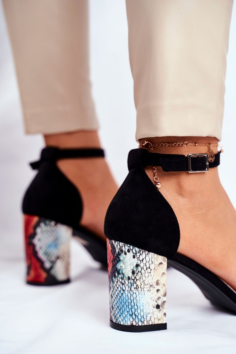 Sandały Na Słupku Sergio Leone SK873 Czarne Wężowy Wzór