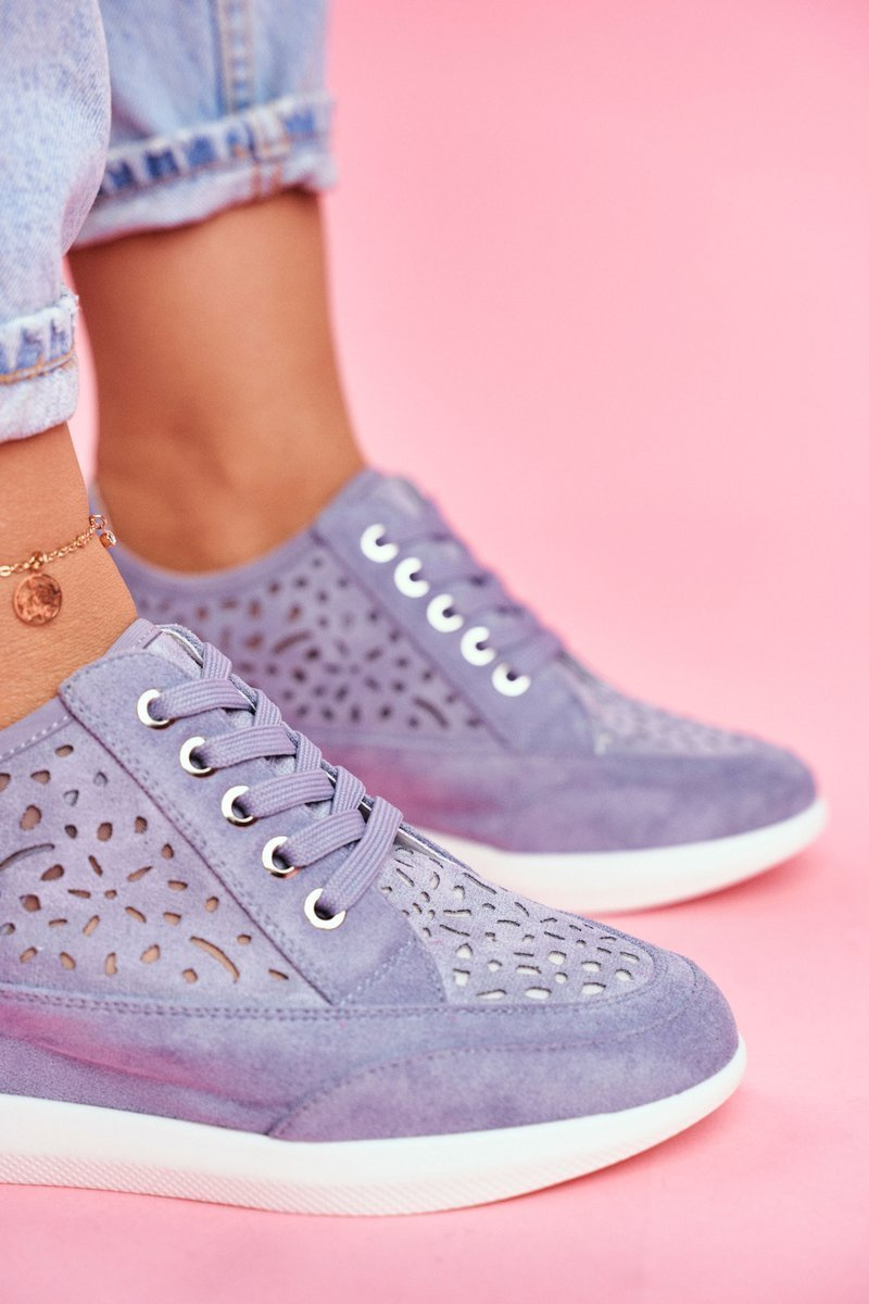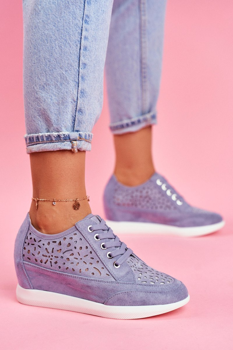 Sneakersy Damskie Sergio Leone Ażurowe Niebieskie PB122