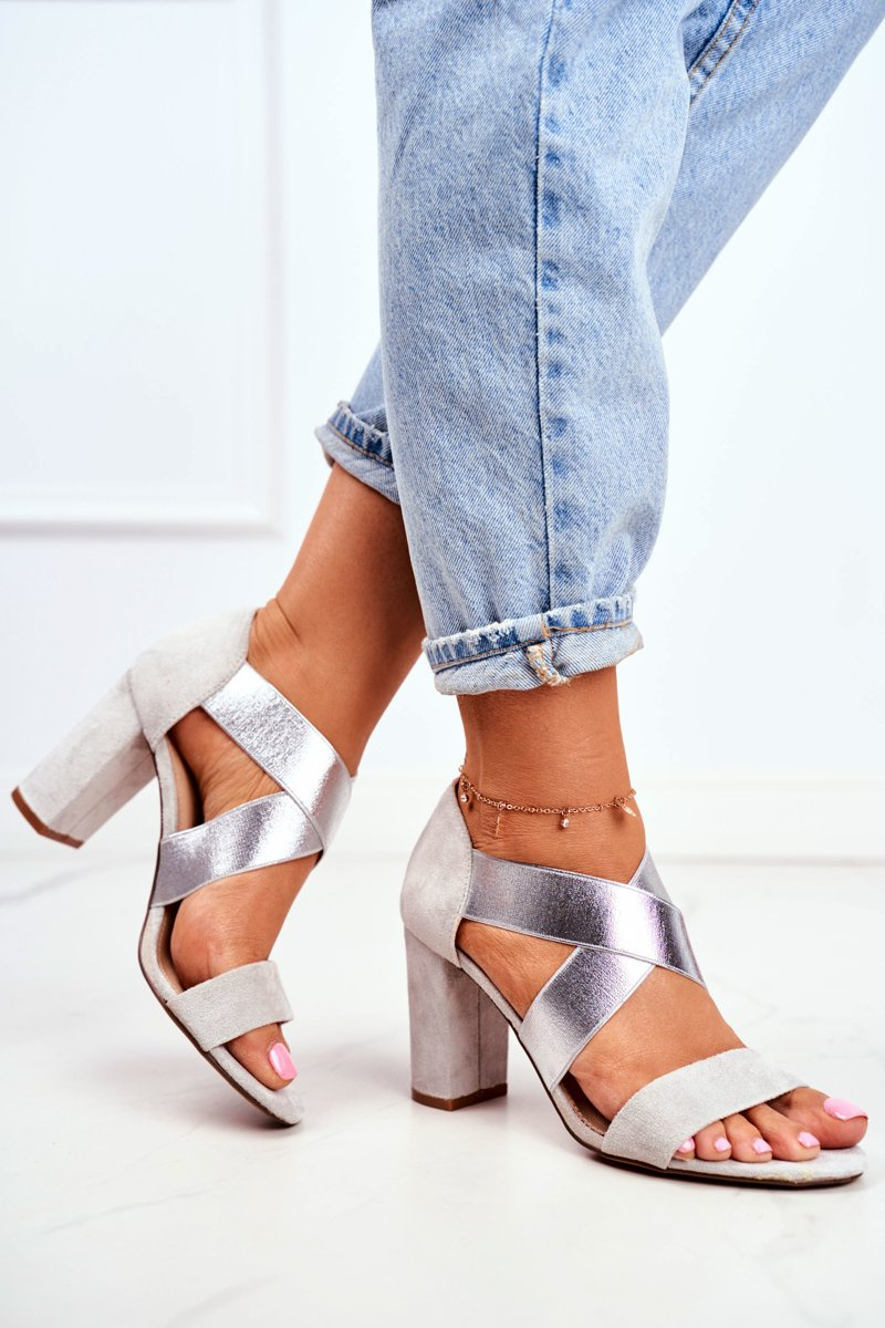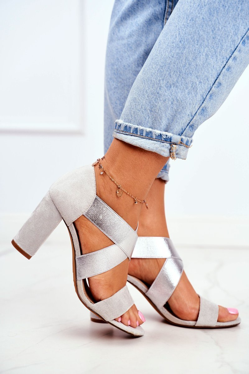 Eleganckie Wsuwane Sandały Na Słupku Szaro-Srebrne Varina