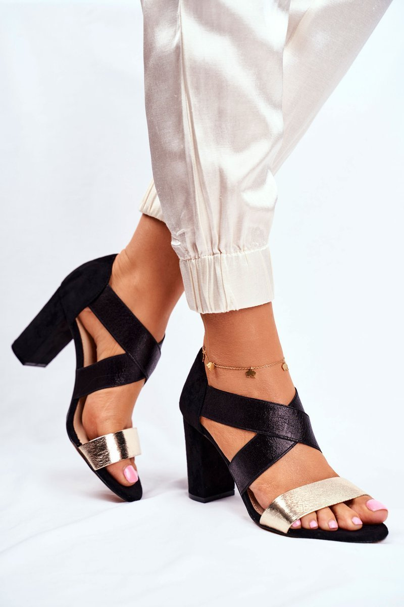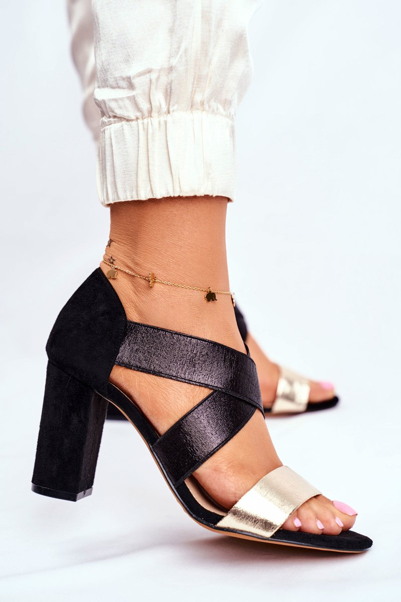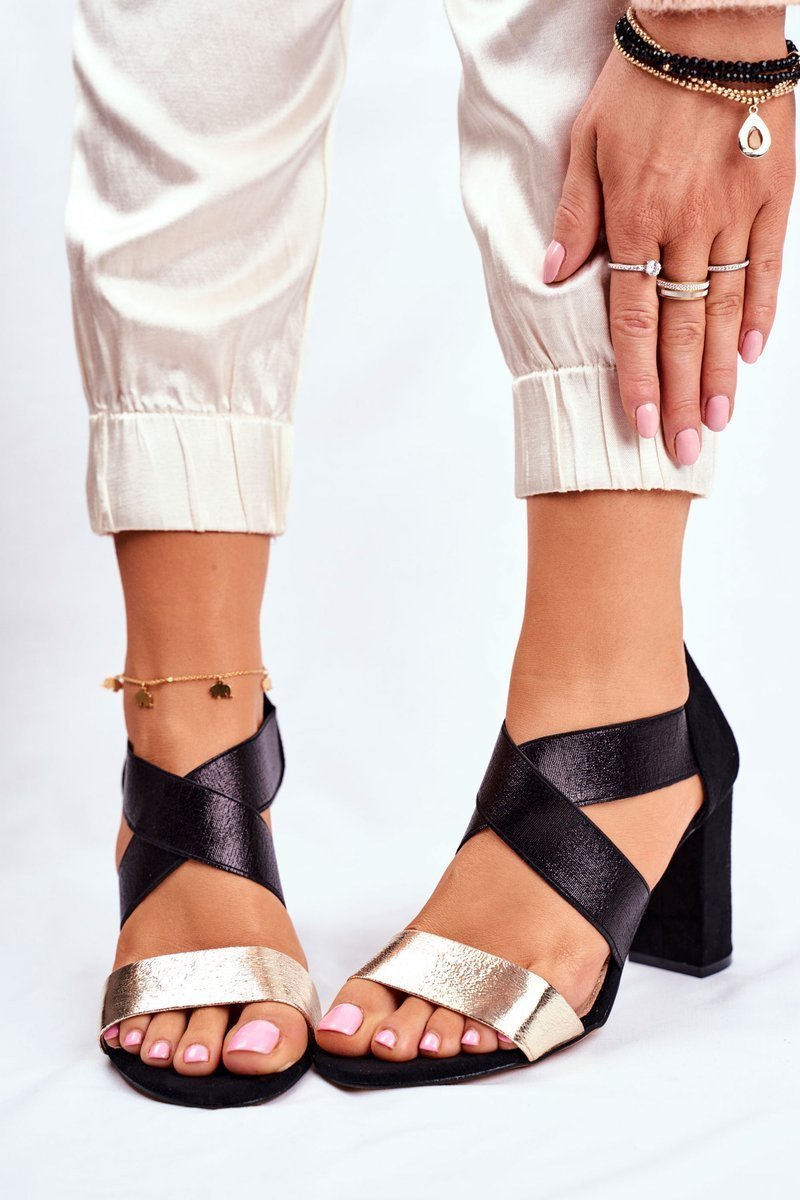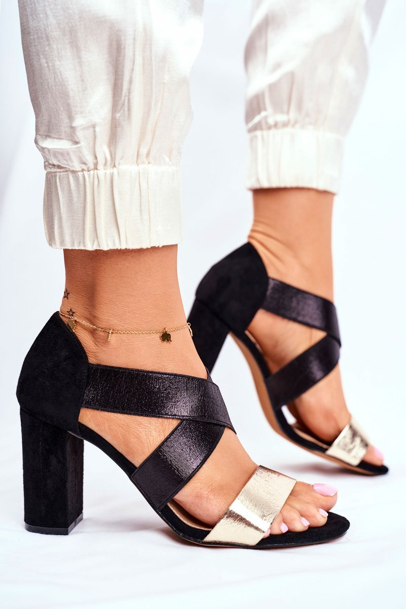 Eleganckie Wsuwane Sandały Na Słupku Czarno-Złote Varina