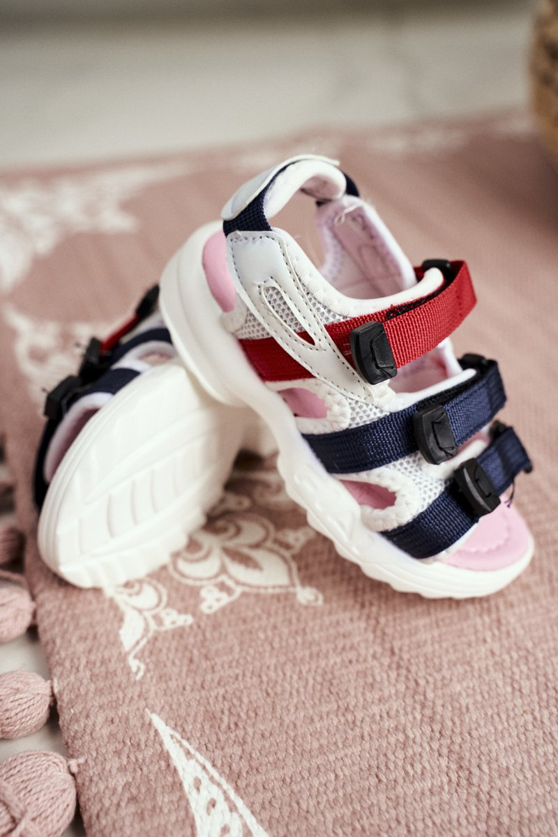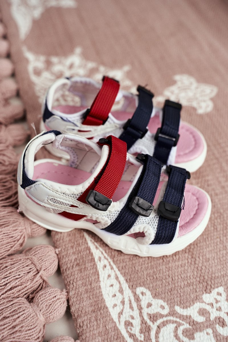 Dziecięce Sandały Na Rzepy Dla Dziewczynki Białe Różowe Fima
