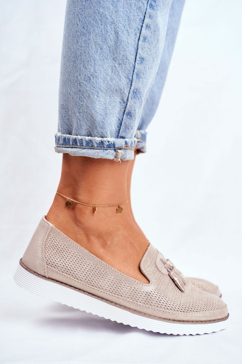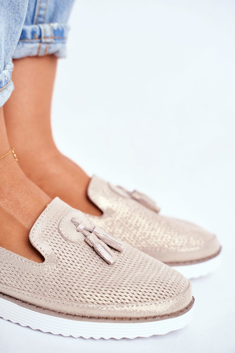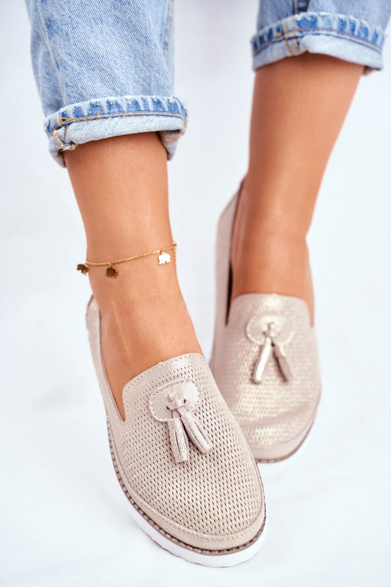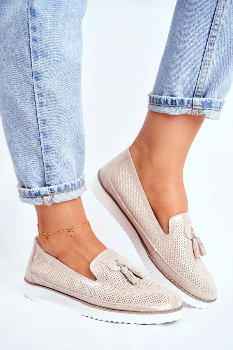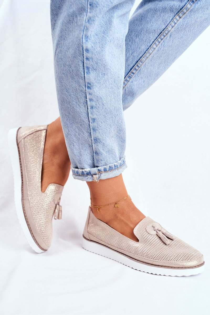 Mokasyny Damskie Skórzane Złote Amore Mio