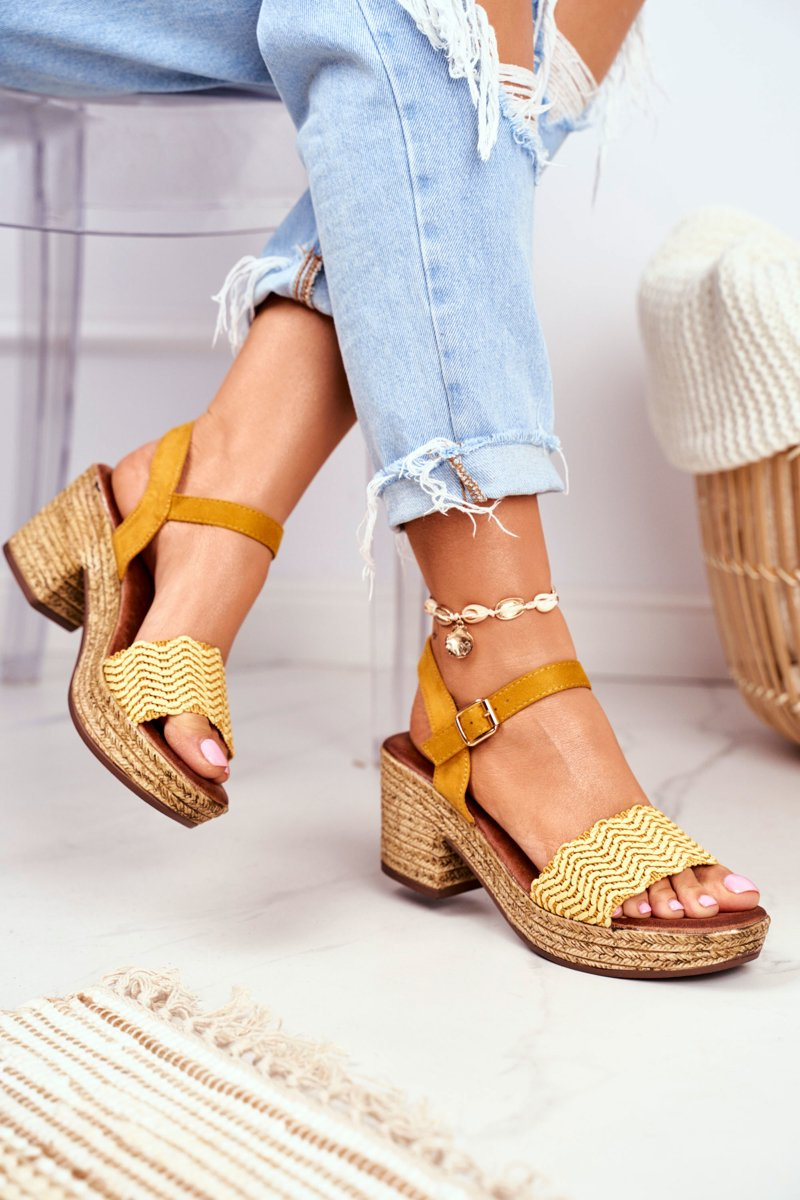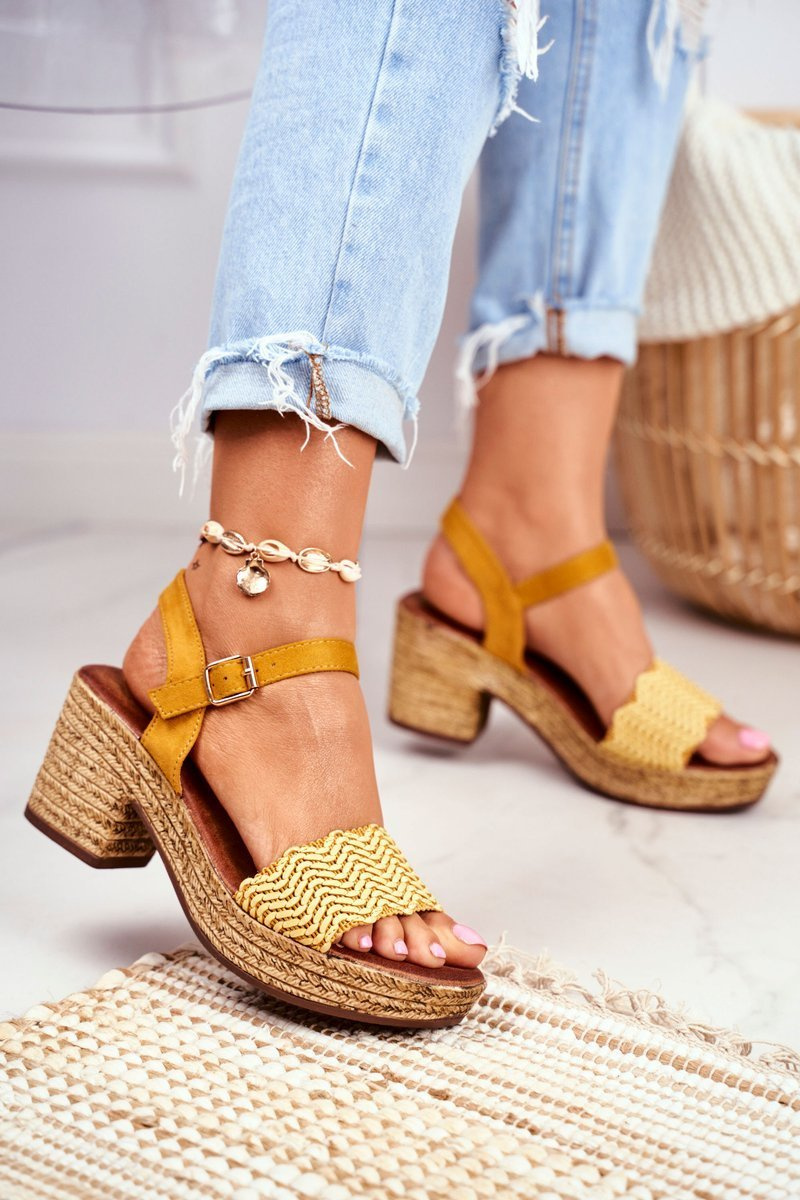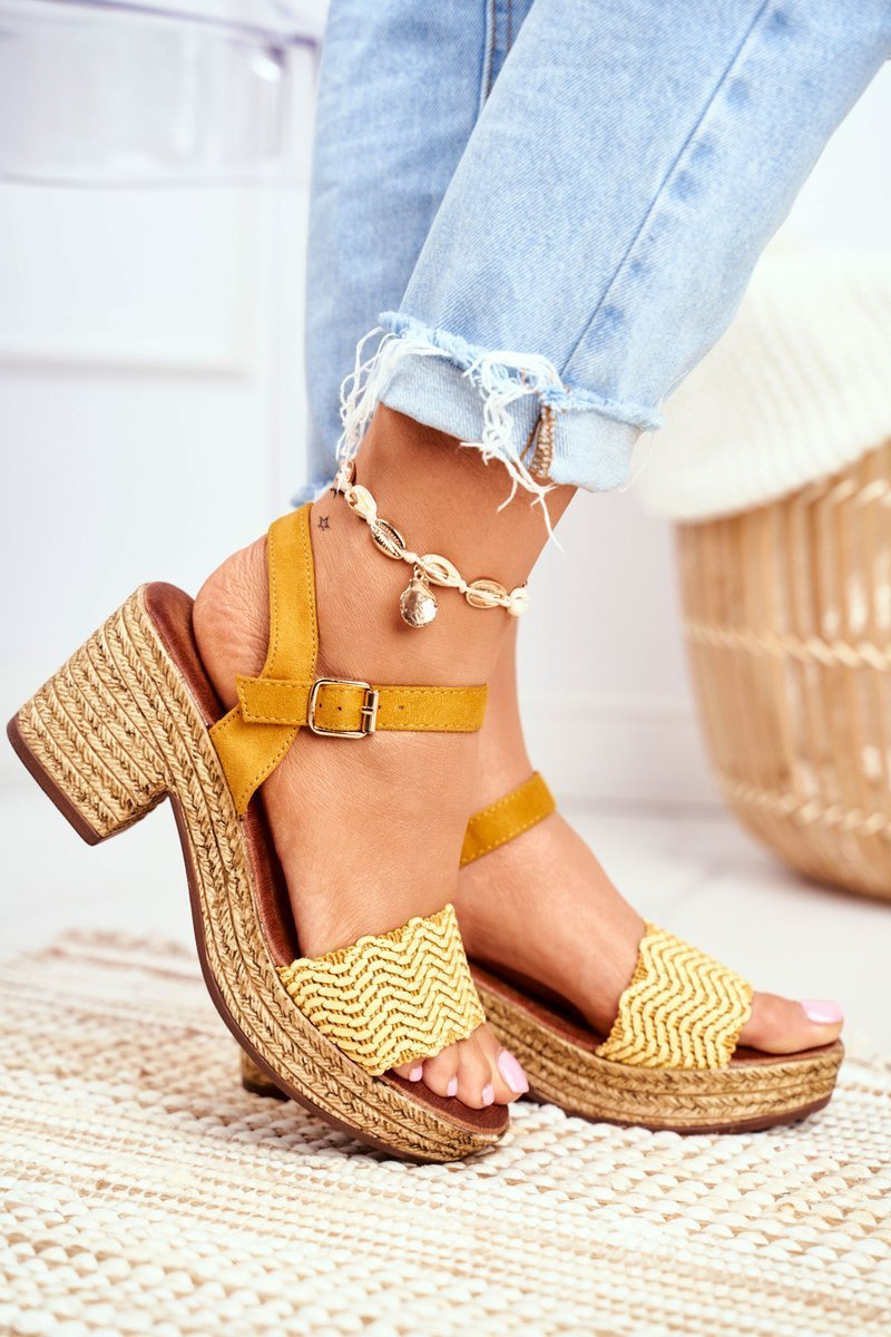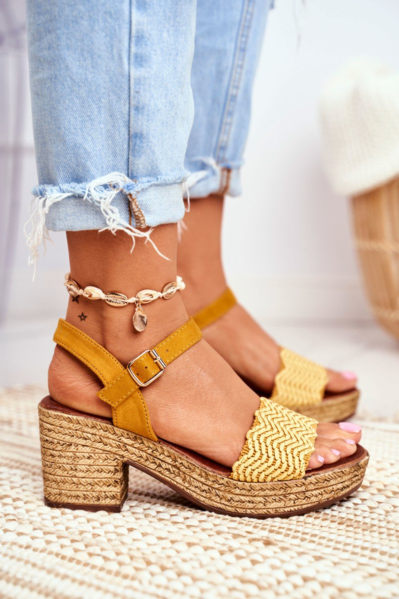 Sandały Na Plecionej Platformie Żółte Fobi