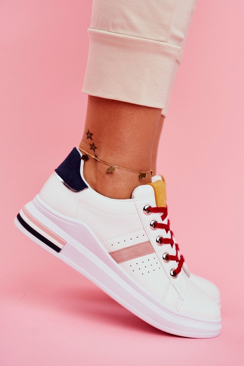 Sportowe Damskie Buty Biało Granatowe Mirra