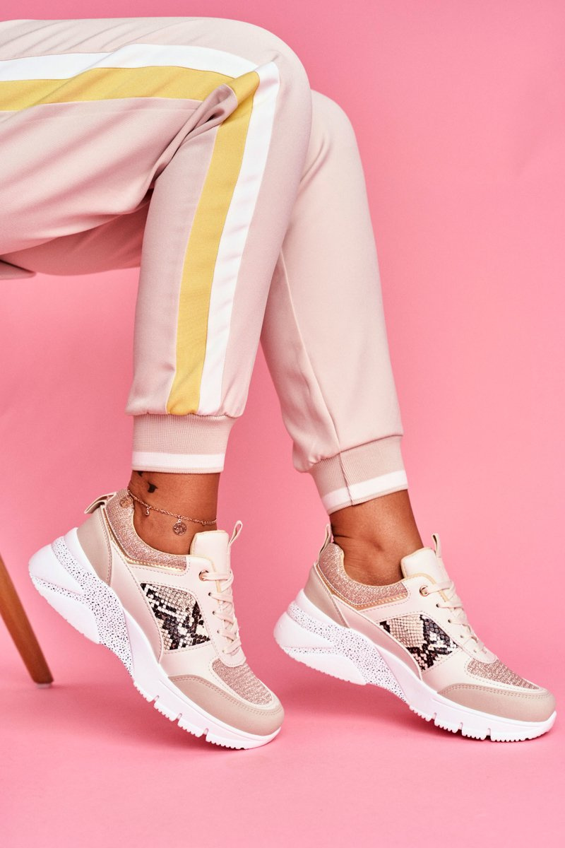 Sportowe Damskie Buty Beżowe Brokat Lisbon