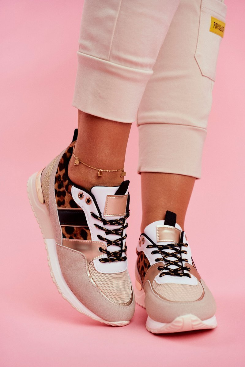 Sportowe Damskie Buty Beżowe Leopard Himme