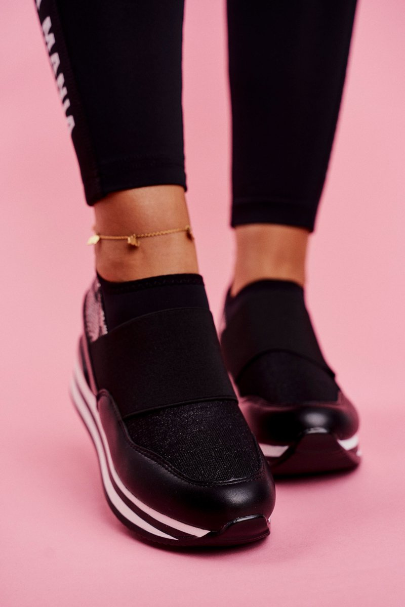 Sportowe Damskie Wsuwane Buty Na Koturnie Czarne Cold Play